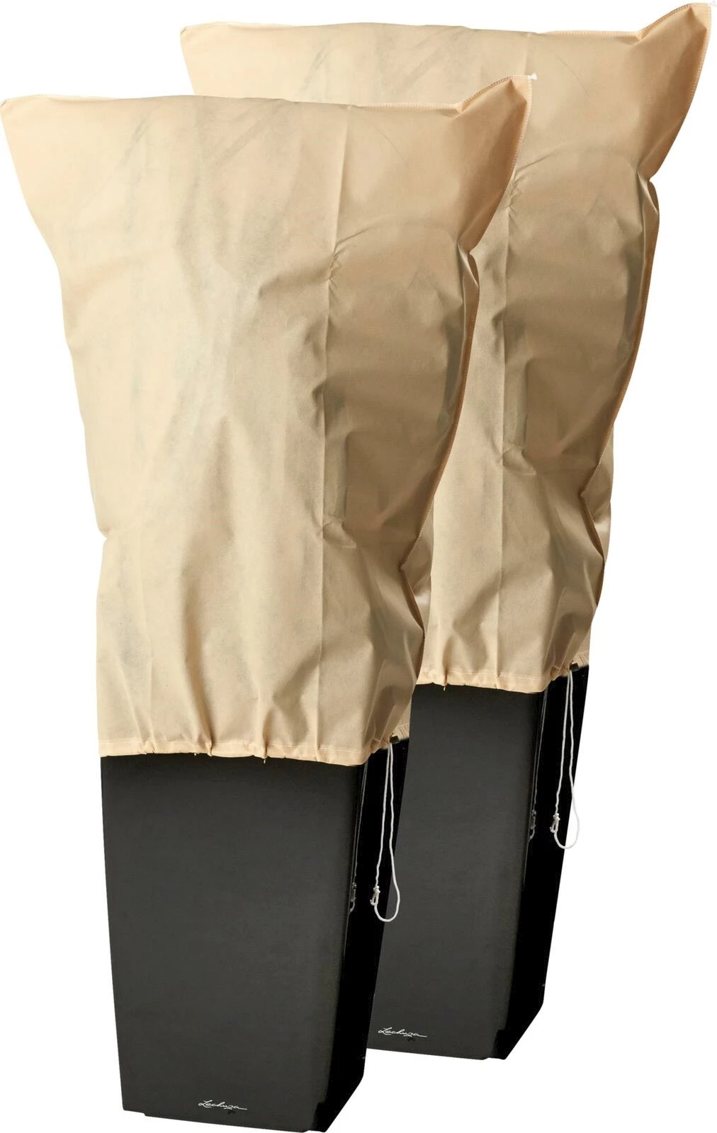 Protège les plantes en bac, les rosiers, les arbustes d'ornement ou les suspensions du gel, du vent et du dessèchement. Avec cordon de serrage. En deux tailles : 80 × 100 cm ou 120 × 180 cm.