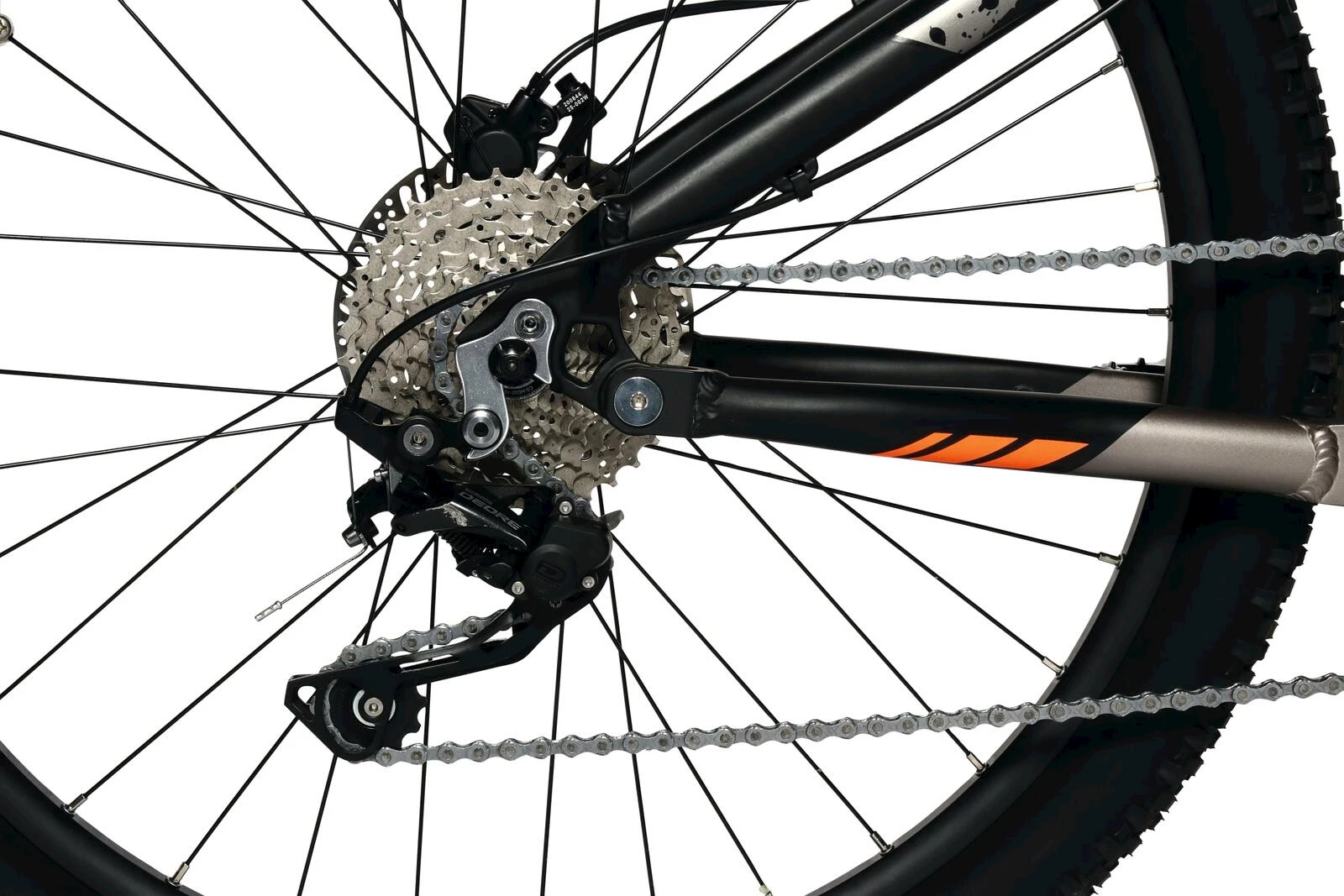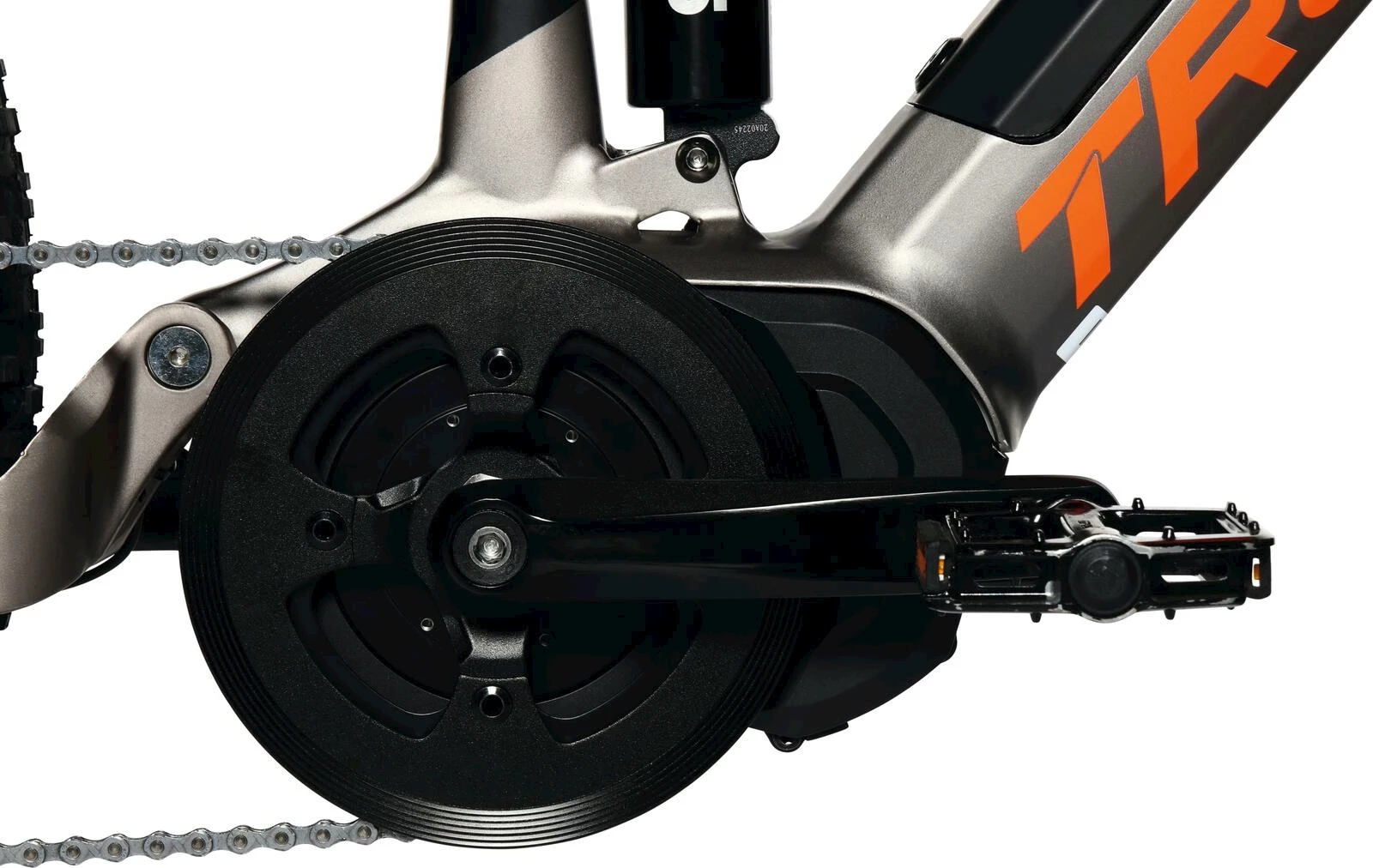 Avec cadre en aluminium solide. Moteur central 250 W, batterie 36 V Inframe, dérailleur 10 vitesses et freins hydrauliques. Pneumatiques Kenda 27,5". Poids : 25,5 kg. Batterie comprise.