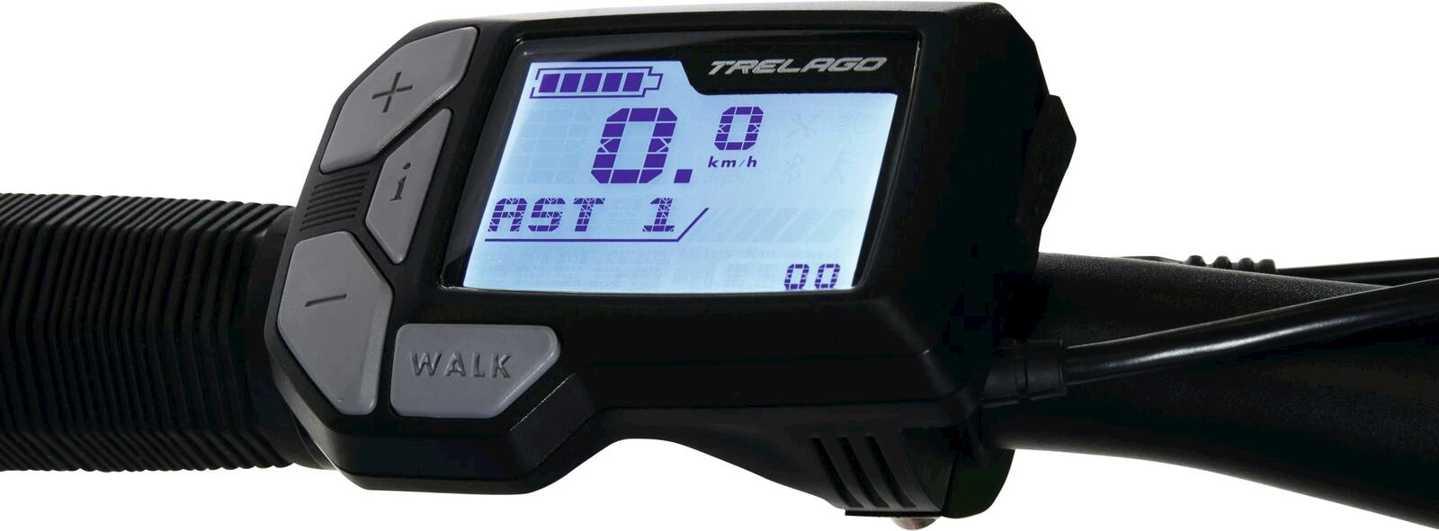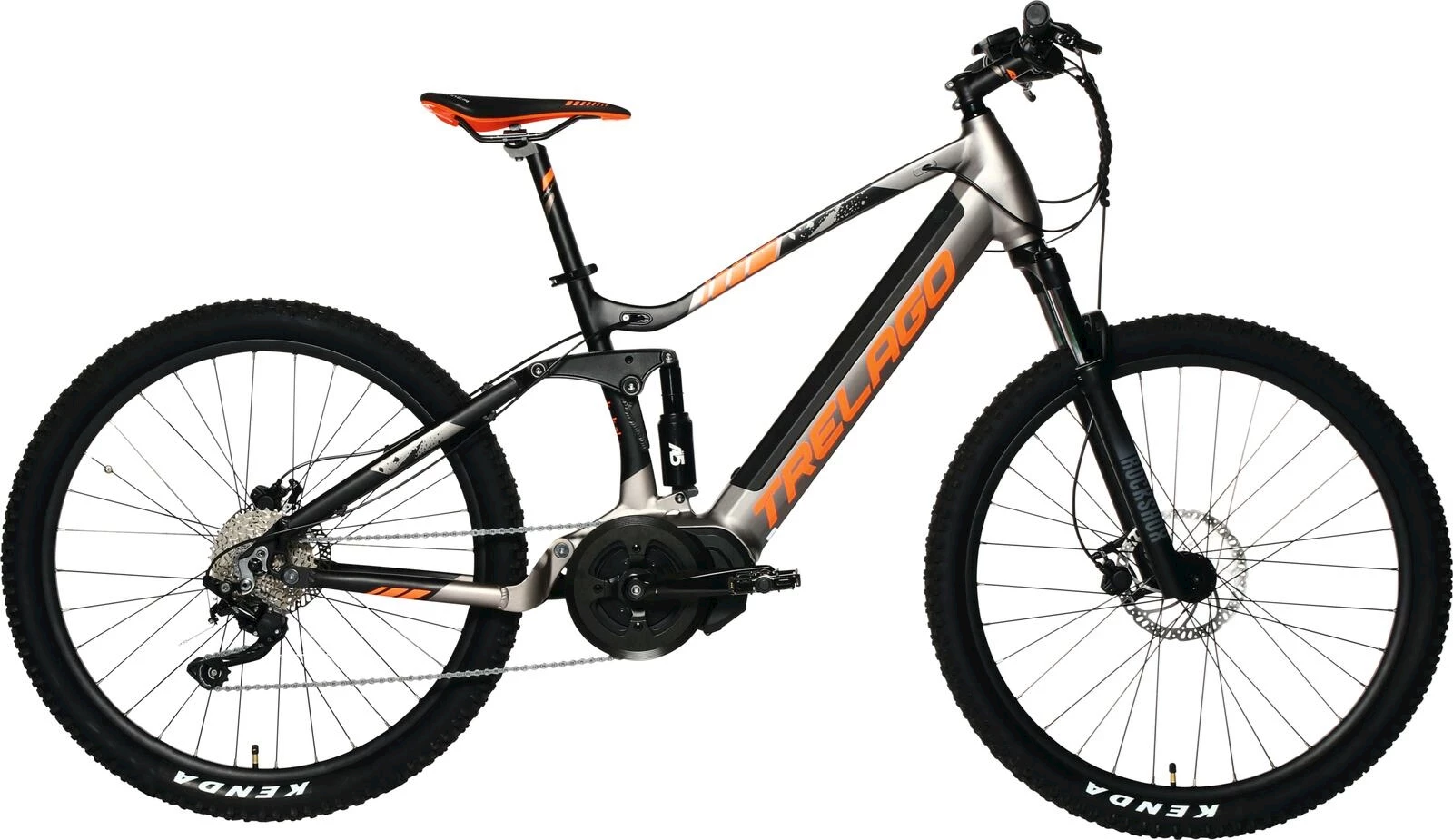 Le VTT électrique Trelago Fully II est le vélo idéal pour la montagne. Vous parcourez ainsi tous les trails sans problème. Le vélo dispose de freins à disque hydrauliques Shimano et d’une fourche à suspension Lockout Rockshox. Vous franchissez toutes les altitudes avec la batterie Li-ion 36 V Sinlion et le moteur puissant Vinka 250 watts. Le VTT électrique est doté également d’un dérailleur 10 vitesses de Shimano. Le poids total maximum du cycliste avec celui du vélo électrique est de 120 kg. La durée de garantie est de 5 ans pour le vélo et de 1 an pour la batterie.