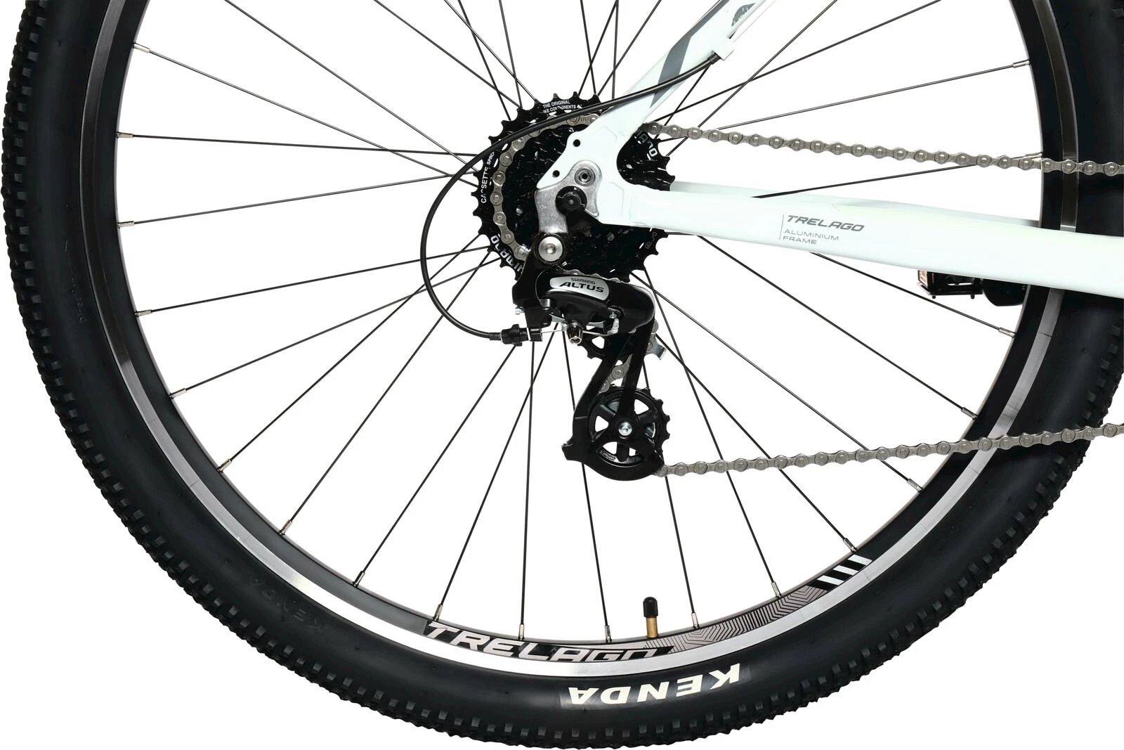 Le VTT Trelago Apolon est un vélo polyvalent. Les composants ont été choisis de manière à ce que ce vélo vous accompagne lors de vos randonnées sportives en tout-terrain, mais aussi sur le chemin du travail, et qu'il réponde à tous vos souhaits. Avec une taille de cadre de plus de 48 cm et une taille de roue de 29 pouces, ce vélo est idéal pour les personnes mesurant entre 170 et 185 cm. L'équipement comprend entre autres un cadre en aluminium stable, une transmission à 24 vitesses, une fourche Suntour (SR) ou des freins Tektro. Grâce aux pneus 29" Kenda, vous aurez toujours une parfaite adhérence au sol. La durée de la garantie est de 5 ans.