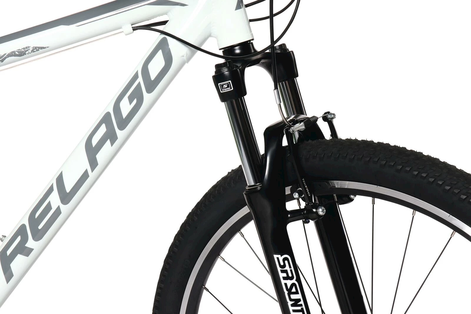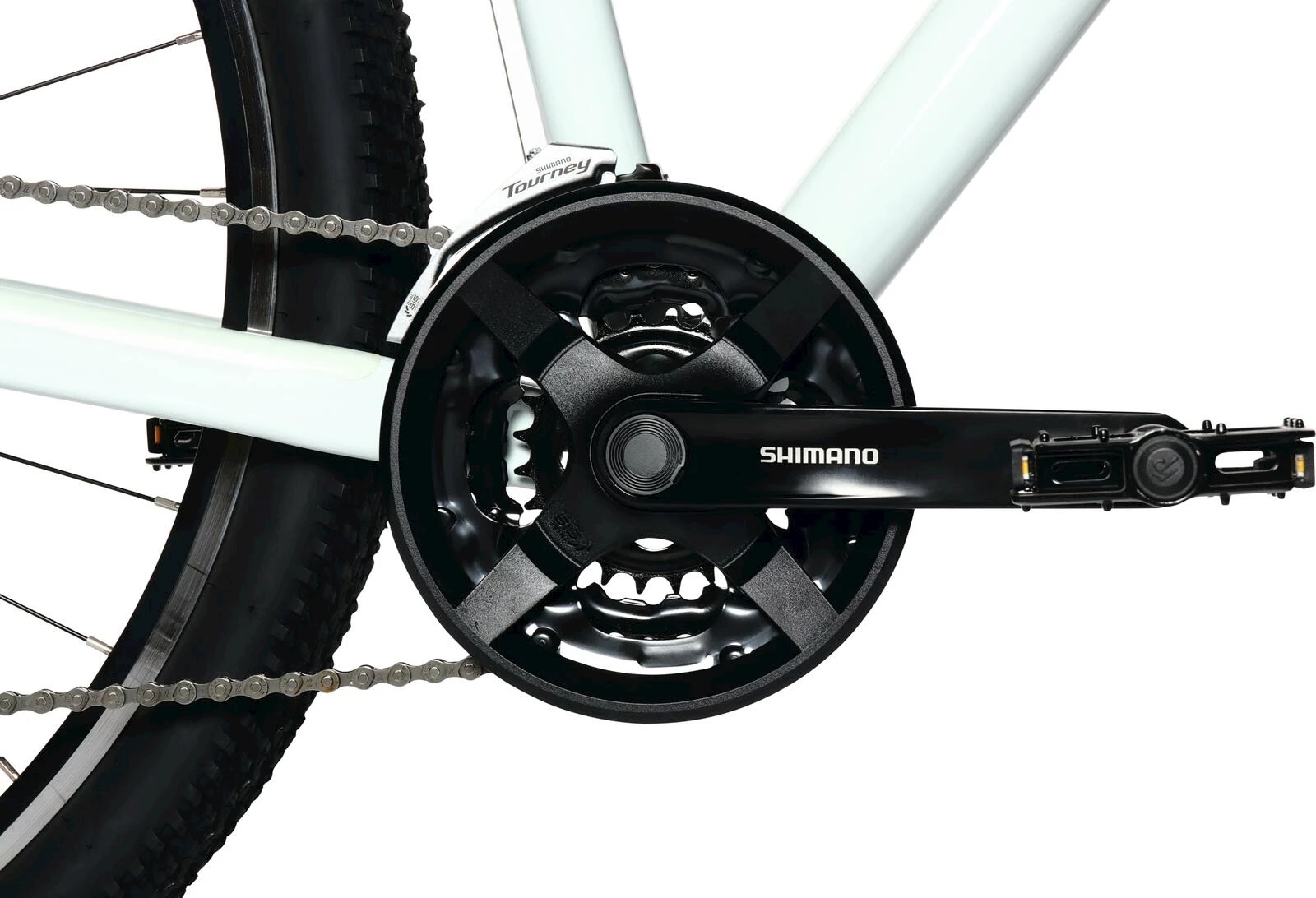 VTT polyvalent avec dérailleur Shimano 24 vitesses, fourche Suntour (SR), freins sur jantes et pneus Kenda. Taille du cadre : 48 cm.