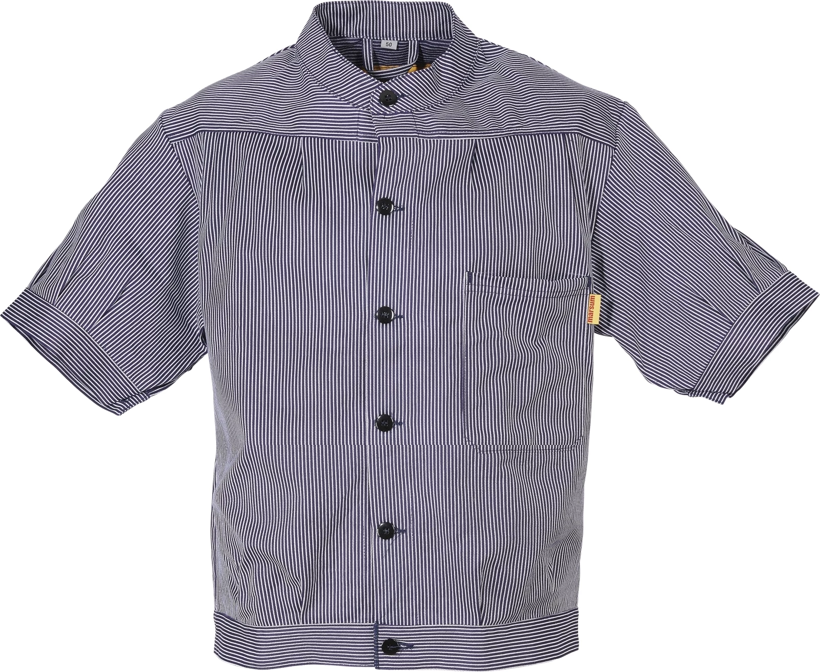 Optimale Passform. Angenehm zu tragen. Mit Brusttasche. Material: 100 % Baumwolle. Farbe: Blau/weiss gestreift. Grössen: 40 - 64.