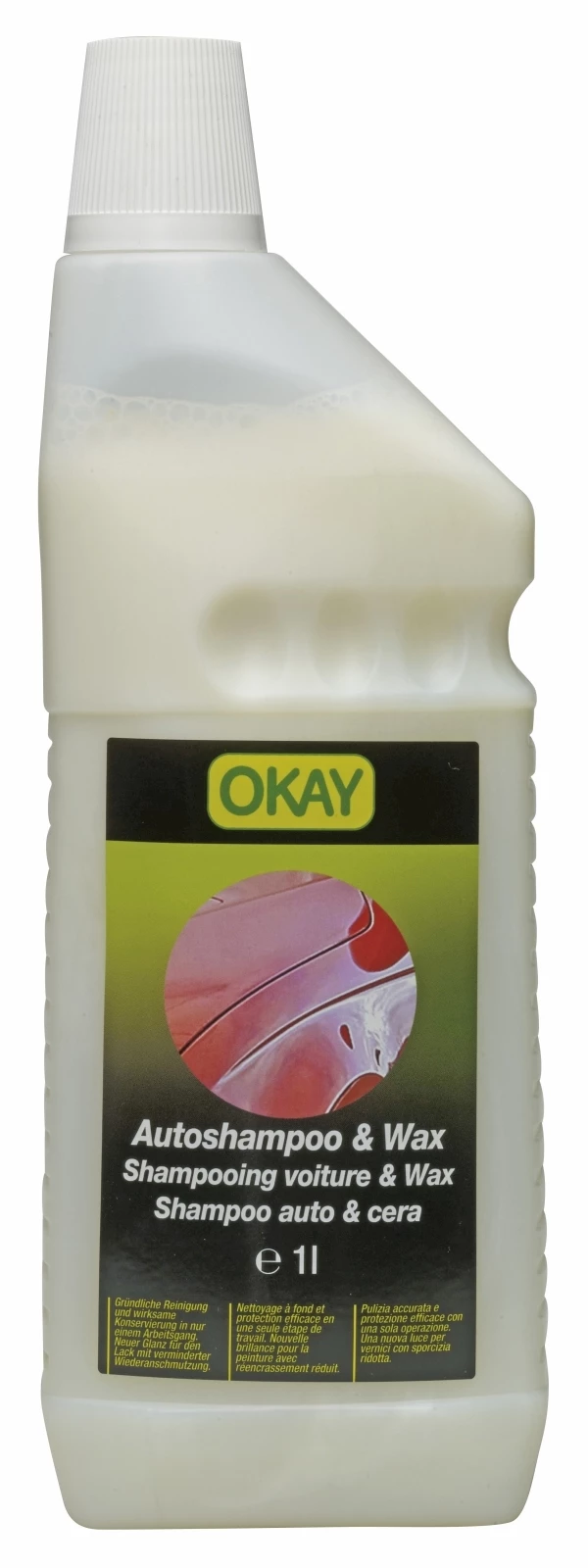 Zuverlässige Reinigung und anhaltende Konservierung der Karosserie und Zierelemente. Vor dem Gebrauch sollten Sie das Reinigungsmittel gut schütteln. Anschliessend eine Verschlusskappe voll Autoshampoo Okay Power mit 5 Liter Wasser mischen. Den groben Schmutz mit Shampoo abspritzen, mit einem Schwamm waschen und im weiteren Wasser zum Abspülen verwenden. Beim abledern sollten Fenster, Spiegel und Chromteile sofort behandelt werden, um einen Wachsfilm zu verhindern.