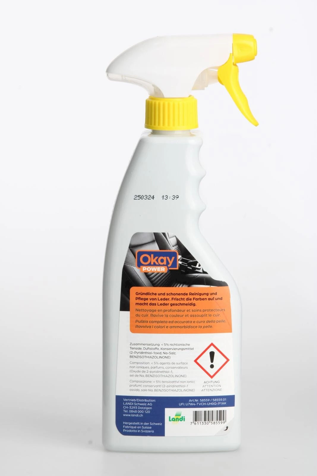 Gründliche und schonende Reinigung und Pflege von Leder. Frischt die Farben auf und macht das Leder geschmeidig. Vor Gebrauch gut schütteln. Lederpflege Okay Power auf einen weichen, leicht feuchten Lappen geben und die Lederteile einreiben. Nicht für Velours- oder Wildleder geeignet.
