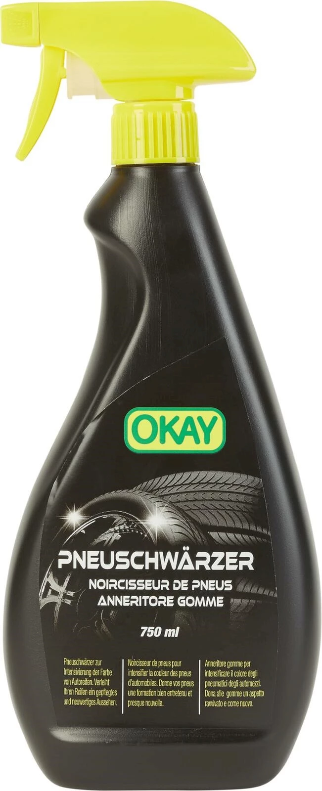 Der Pneuschwärzer ist für alle Arten von Reifen geeignet und bringt den tiefschwarzen Look zurück. Eine Regelmässige Anwendung bietet dem Gummi eine Intensivpflege, schützt vor Rissbildung, Braunfärbung, vorzeitiger Alterung und Farbausbleichung. Das Mittel lässt sich mittels Sprayflasche leicht und schnell auftragen.