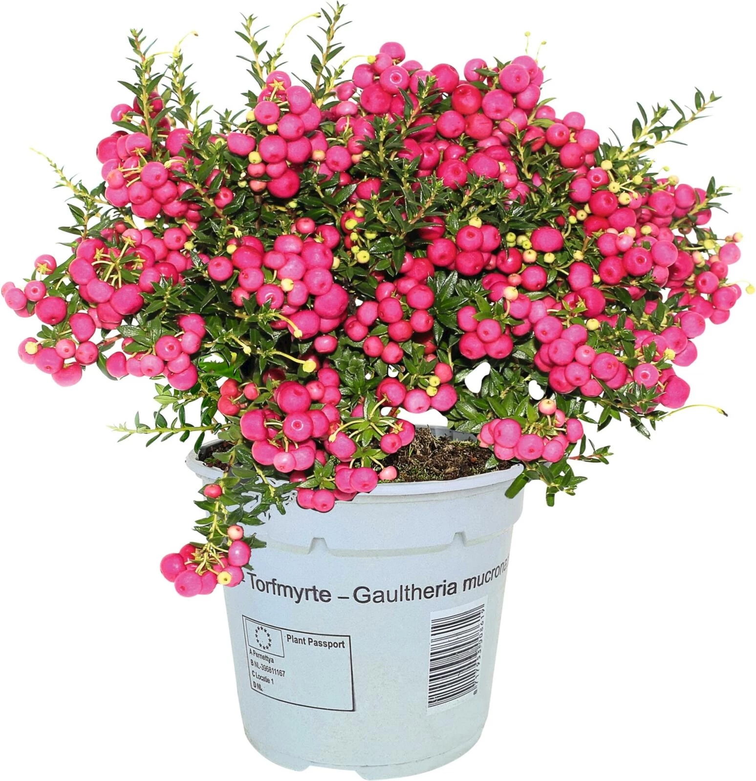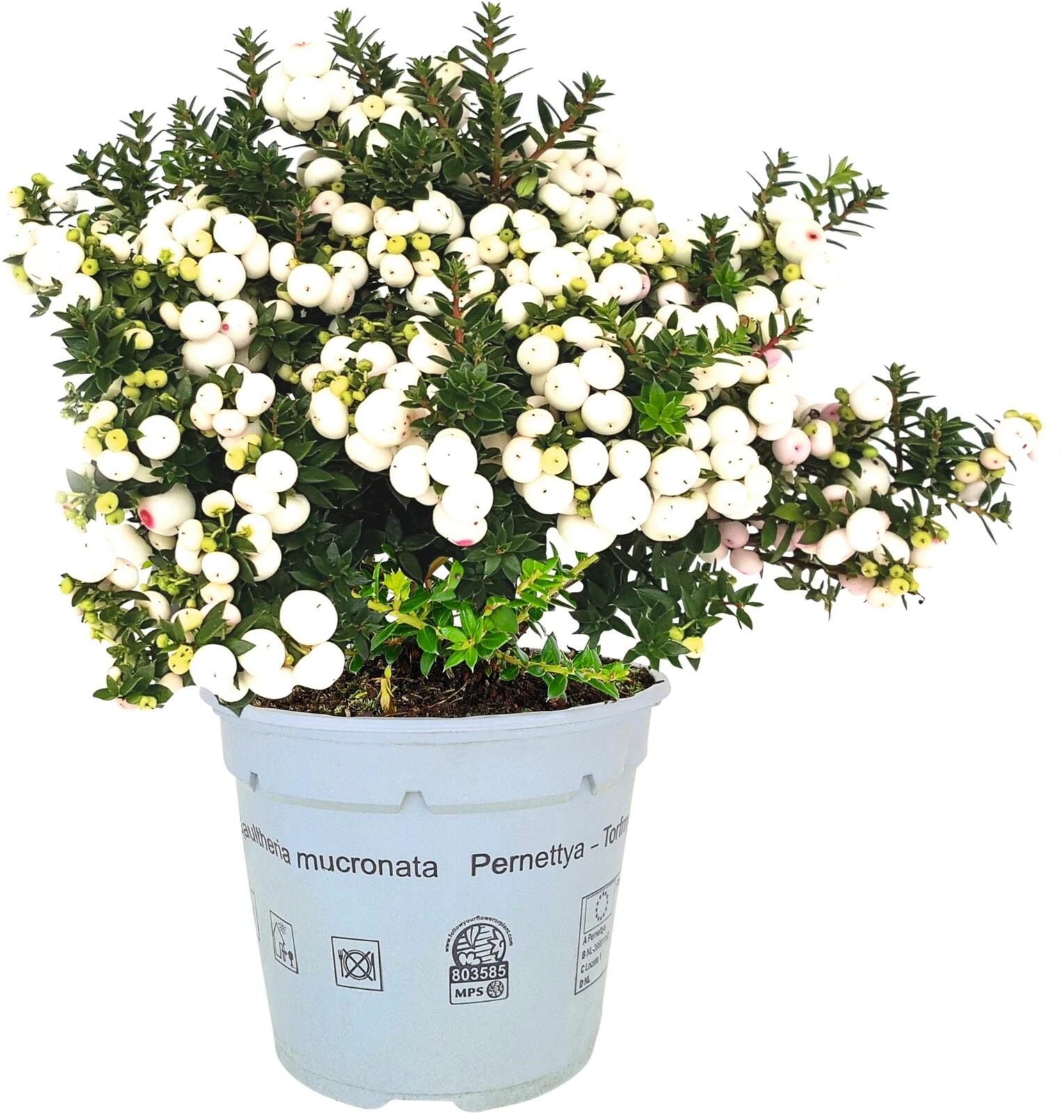 Die Scheinbeere (Pernettya) ist ein beliebter und immergrüner Beerenstrauch. Er hat dunkelgrüne, ledrige Blätter. Zwischen Mai und August blüht er und später trägt er Beeren.