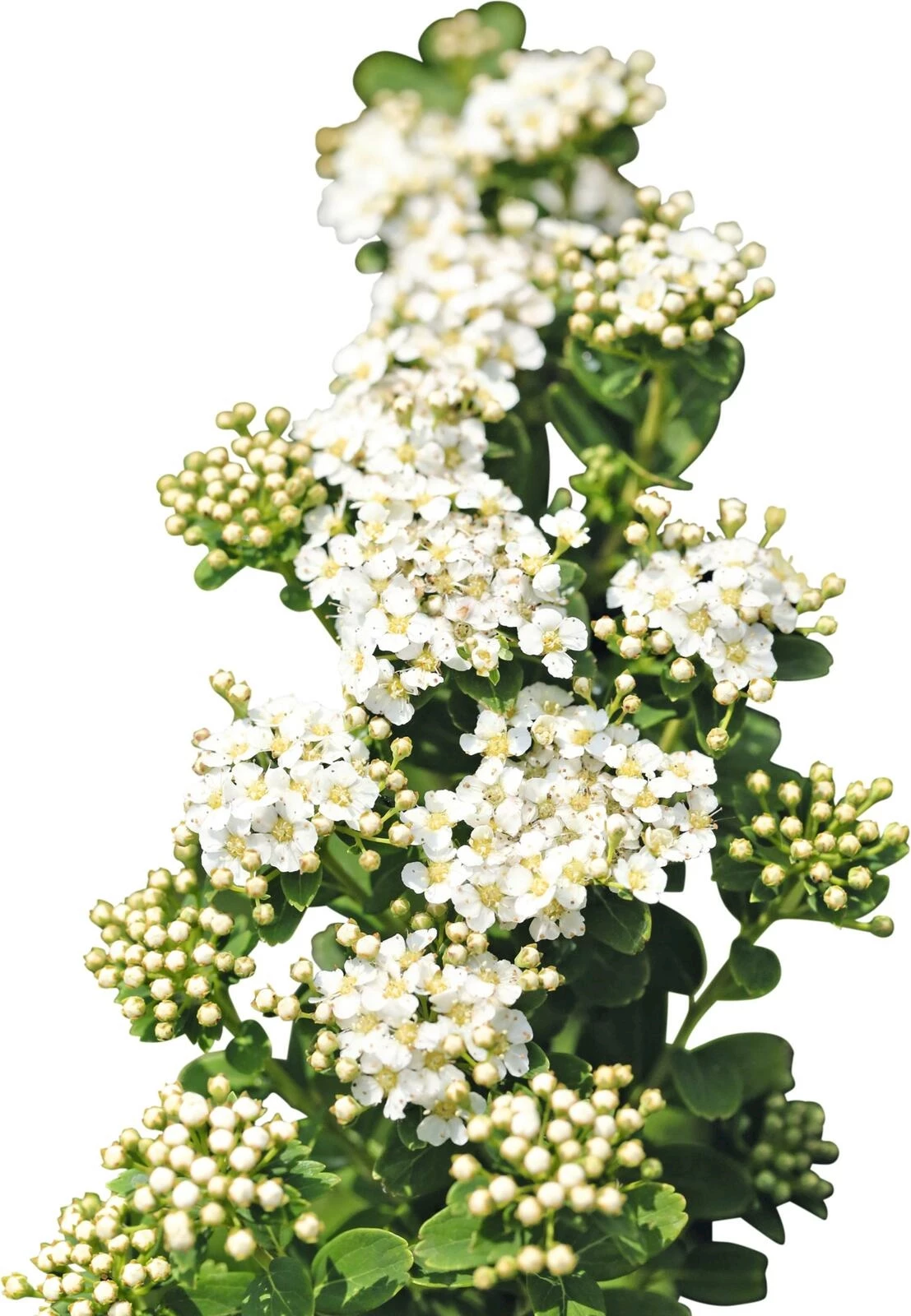 Dieser breit- und aufrechtwachsender, sowie dichtbuschiger Strauch mit überhängenden Zweigen, wird im April/Mai mit schneeweissen Blüten geziert.