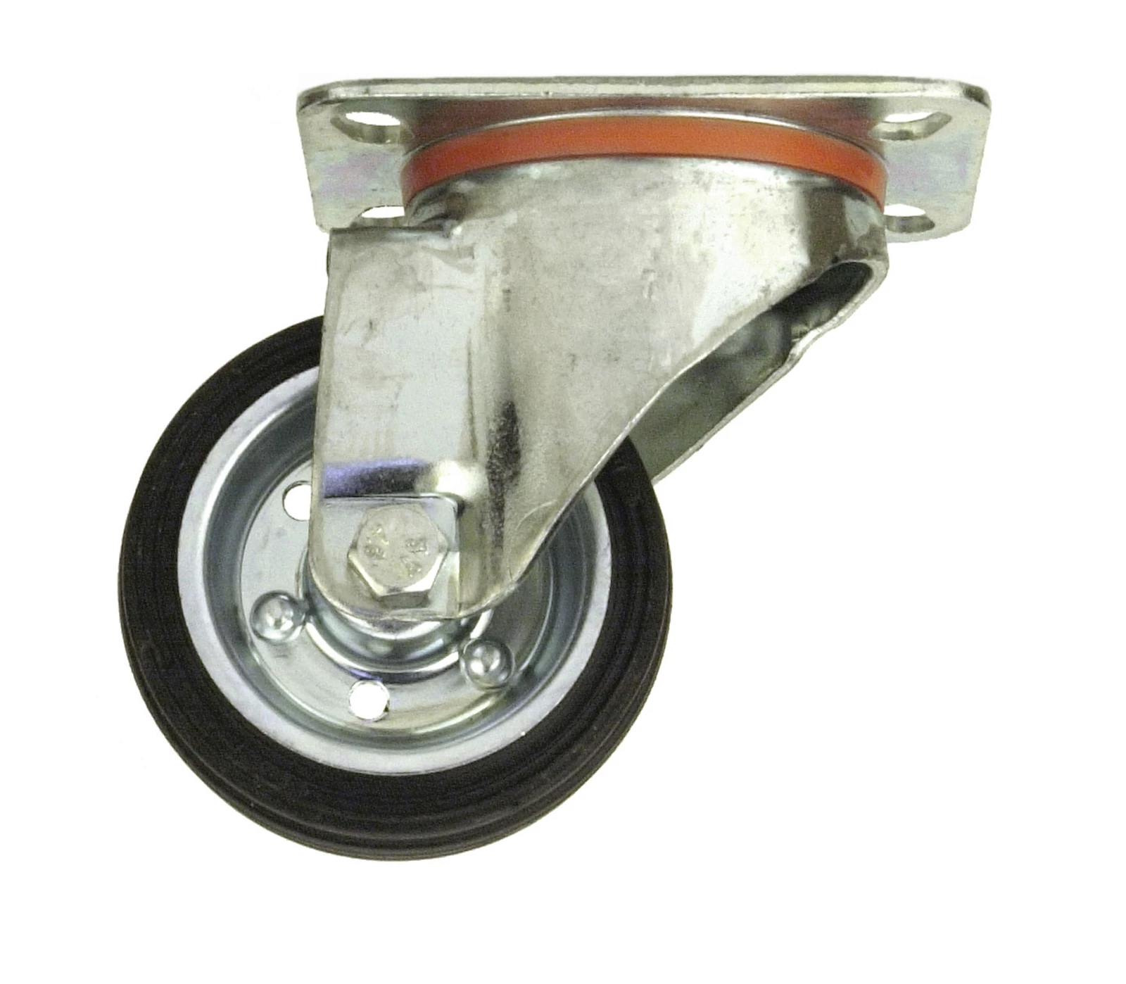 Lenkrolle mit Platte zur Befestigung. Oberfläche: Verzinkt. Maximale Nutzlast: 75 kg.