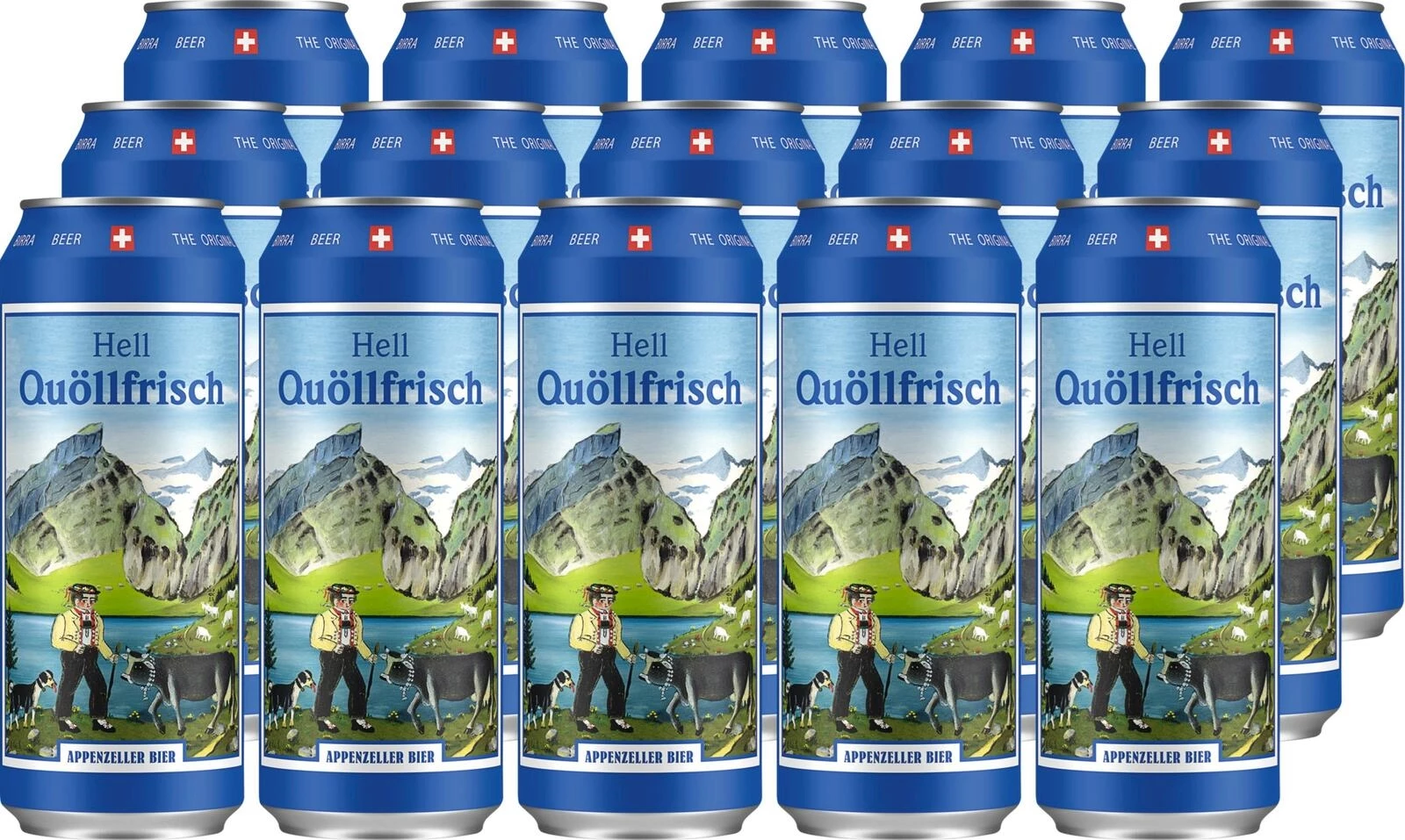 Das milde und leicht fruchtige Quöllfrisch hell wird aus reinem Pilsnermalz und drei verschiedenen Hopfensorten nach klassischer Rezeptur gebraut. Seine Ausgewogenheit und dezente Hopfenbitter erhält das Lagerbier durch eine dreimonatige Lagerung im Felsenkeller. Das Appenzeller Bier passt zu allen Gelegenheiten.