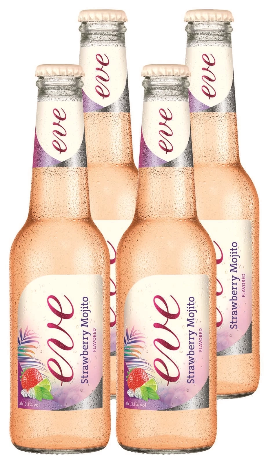 Eve Strawberry Mojito ist ein prickelnder, erfrischender und leicht alkoholhaltiger Cocktail-Drink mit einem warmen leichten Rotton. Der fruchtig frische Geruch nach Erdbeeren, Minze, Limetten und der zarte Geschmack nach Rum wird kombiniert mit einer genussvollen Süsse und einem prickelnden Mundgefühl. Das leicht moussierende Getränk mit nur 3.1 % Alkohol passt perfekt zu einem reichhaltigen Apérobuffet und süssen Desserts.