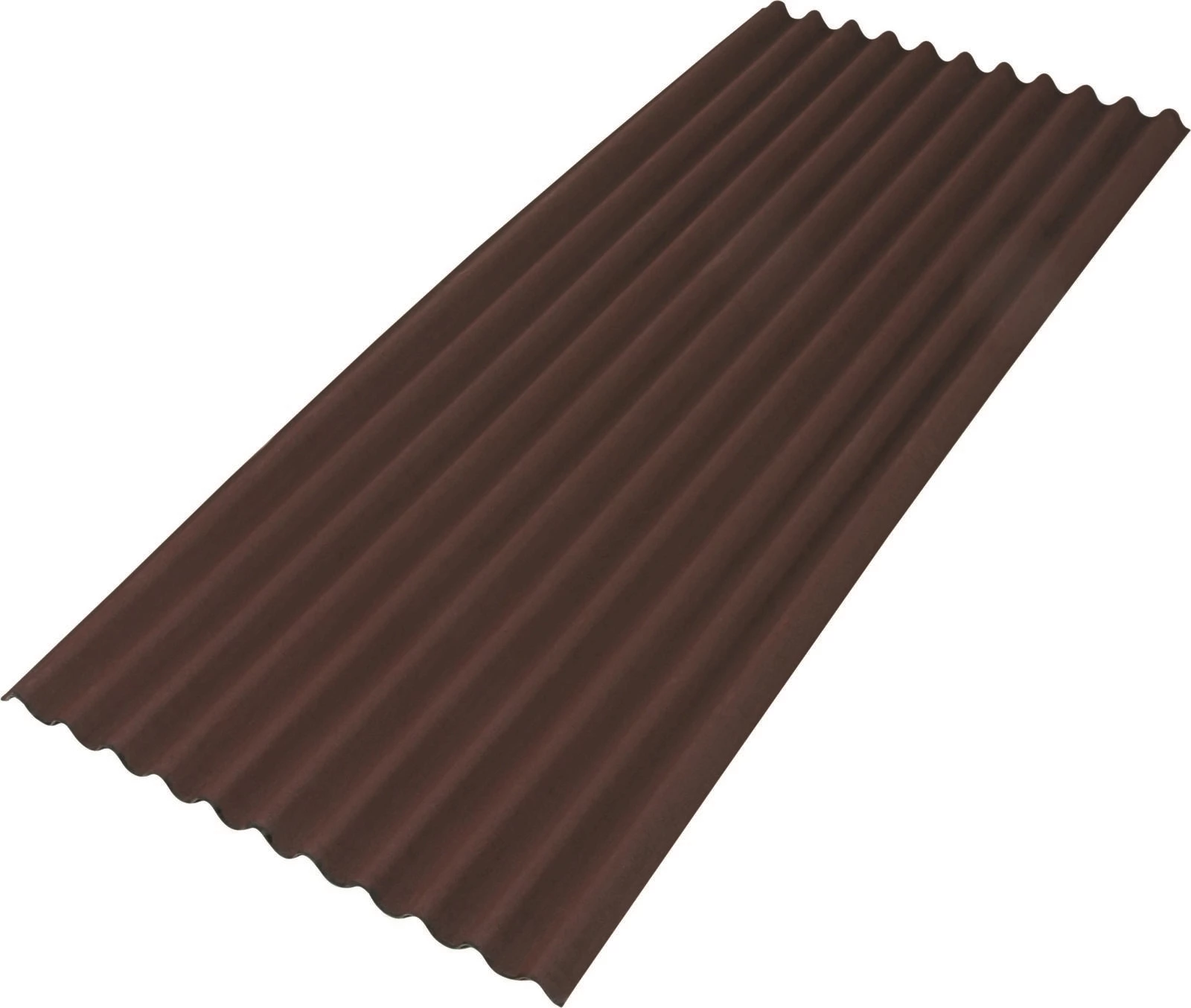 Bedachungsplatte aus Recyclingpapier/Bitumen. Robust und langlebig. Schnelles Verlegen und einfache Handhabung. Wasserdicht. Materialstärke: 3-4 mm.