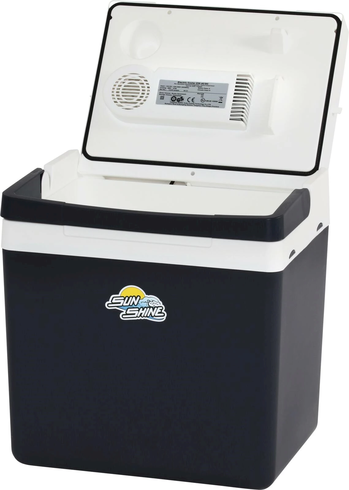 Mit 12 / 230 V Anschluss. Mit Eco-Min-Max-Regler. Kühlleistung: Bis max. 17 °C unter Umgebungstemperatur. Masse: 39,5 × 29 × 41,5 cm.