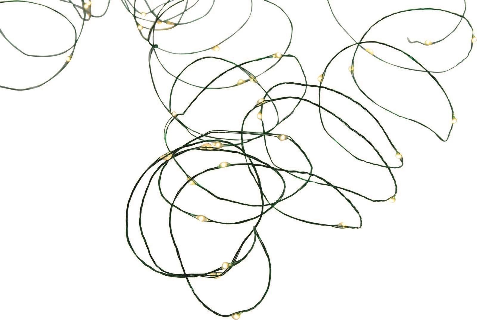 Länge: 7,9 m. Exkl. 3 × AA Batterien. 6h ON / OFF Timer. Grüner Draht. Lampenabstand: 10 cm. 30 cm Anschlusskabel.