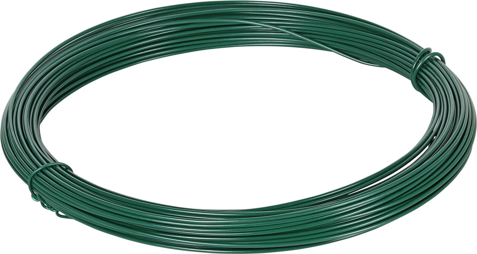 PVC beschichteter. Stabiler Stahldraht. Geeignet für Zäune, zum Basteln und für Befestigung allerlei Gegenstände im Haus und im Garten. Farbe: Grün. Drahtstärke: Ø 2,0 mm, inkl Ummantelung Ø 3,5 mm. Länge: 50 m.