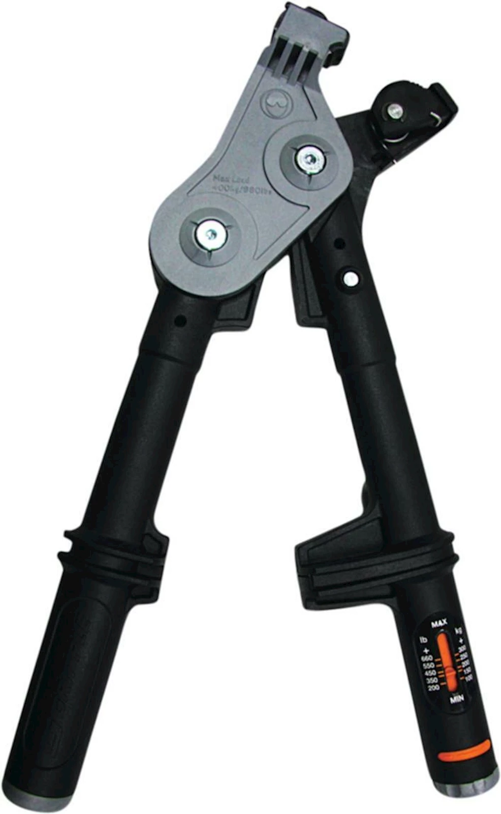 Spannt den Draht, misst und reguliert die angelegte Spannkraft. Geeignet für Drähte bis zu 300 kg.