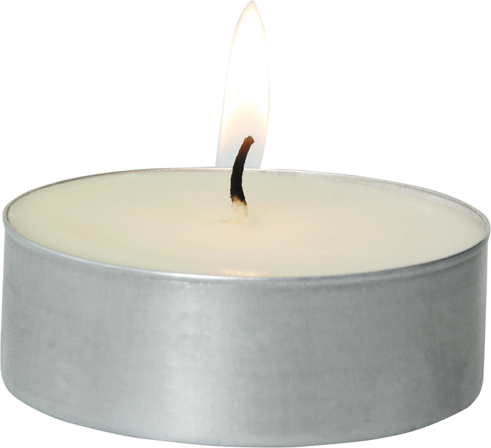 Brenndauer ca. 8 Stunden. 100 % Paraffin. In Aluminiumhüllen.