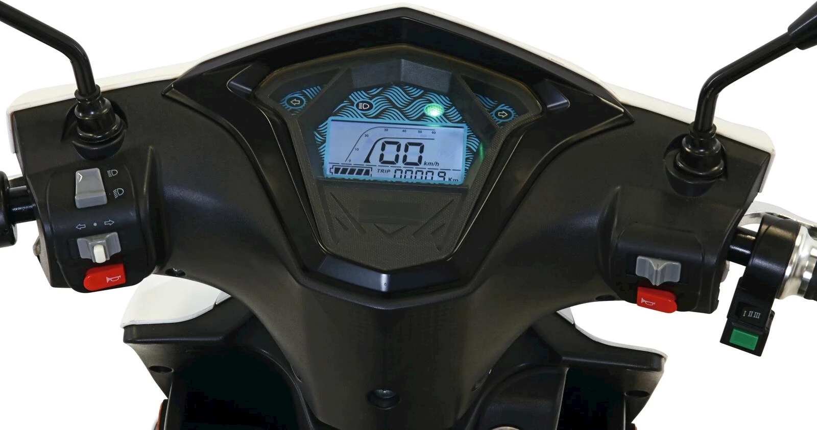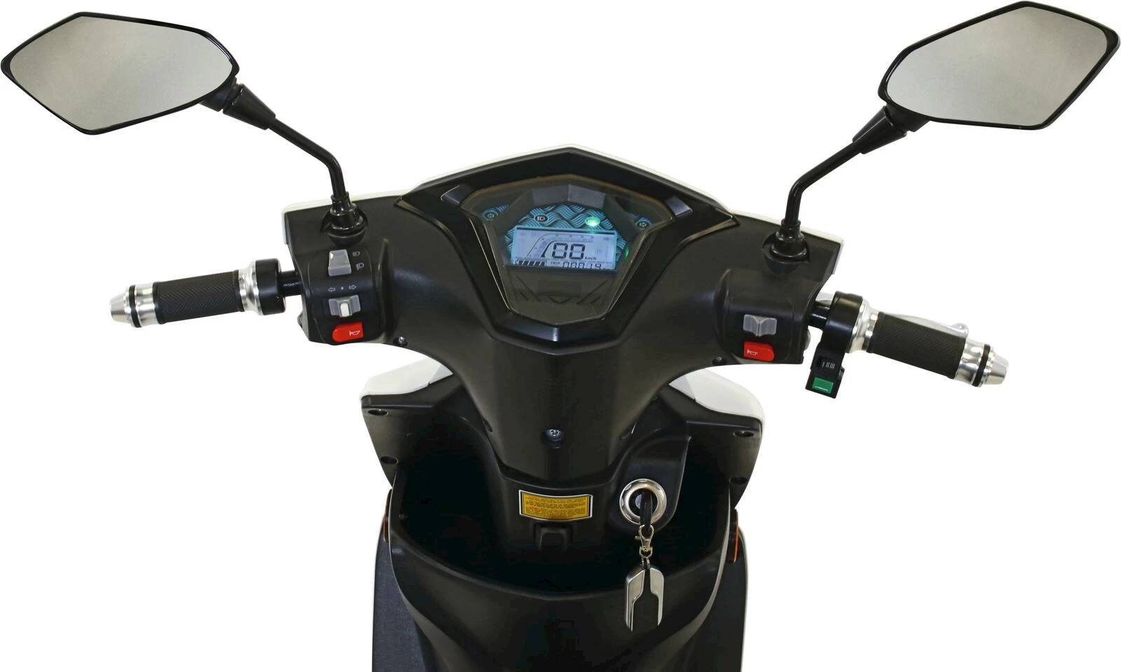 Mit dem wendigen Elektroroller Leo erhalten Sie ein Einsteiger-Fahrzeug mit einer Fahrleistung von bis zu 45 km/h und einer maximalen Reichweite von 50 Kilometern*. Ausgestattet ist der Leo mit umfangreichen Features wie zum Beispiel einem digitalen Tacho, hydraulischen Stossdämpfern vorne und hinten oder Scheibenbremse vorne und Trommelbremse hinten. Die Akkuladezeit beträgt ca. 6 bis 8 Stunden.