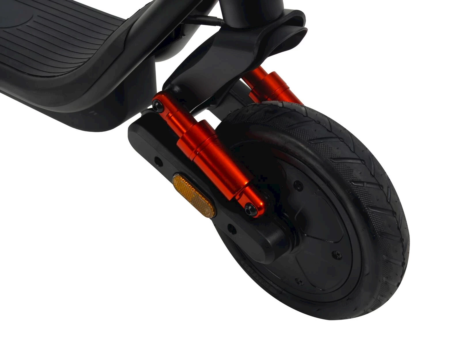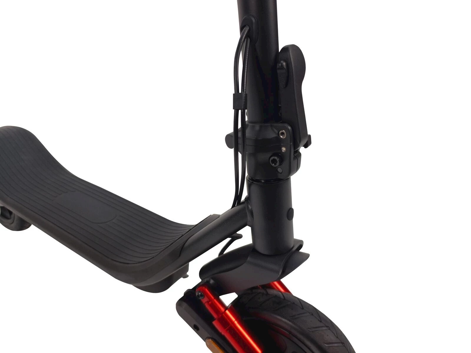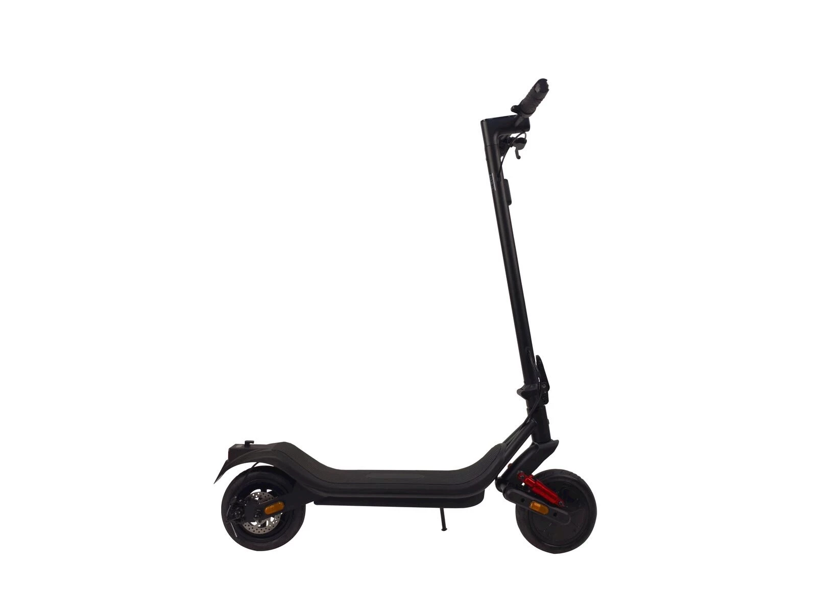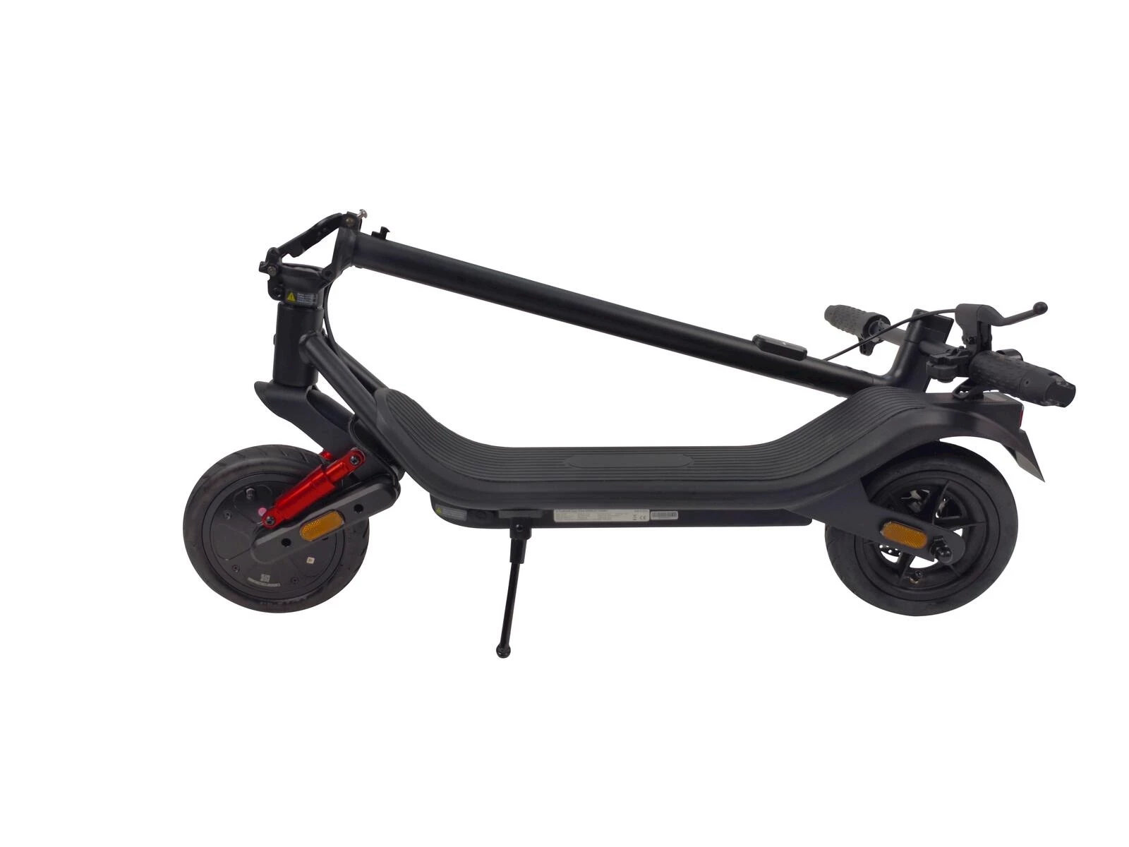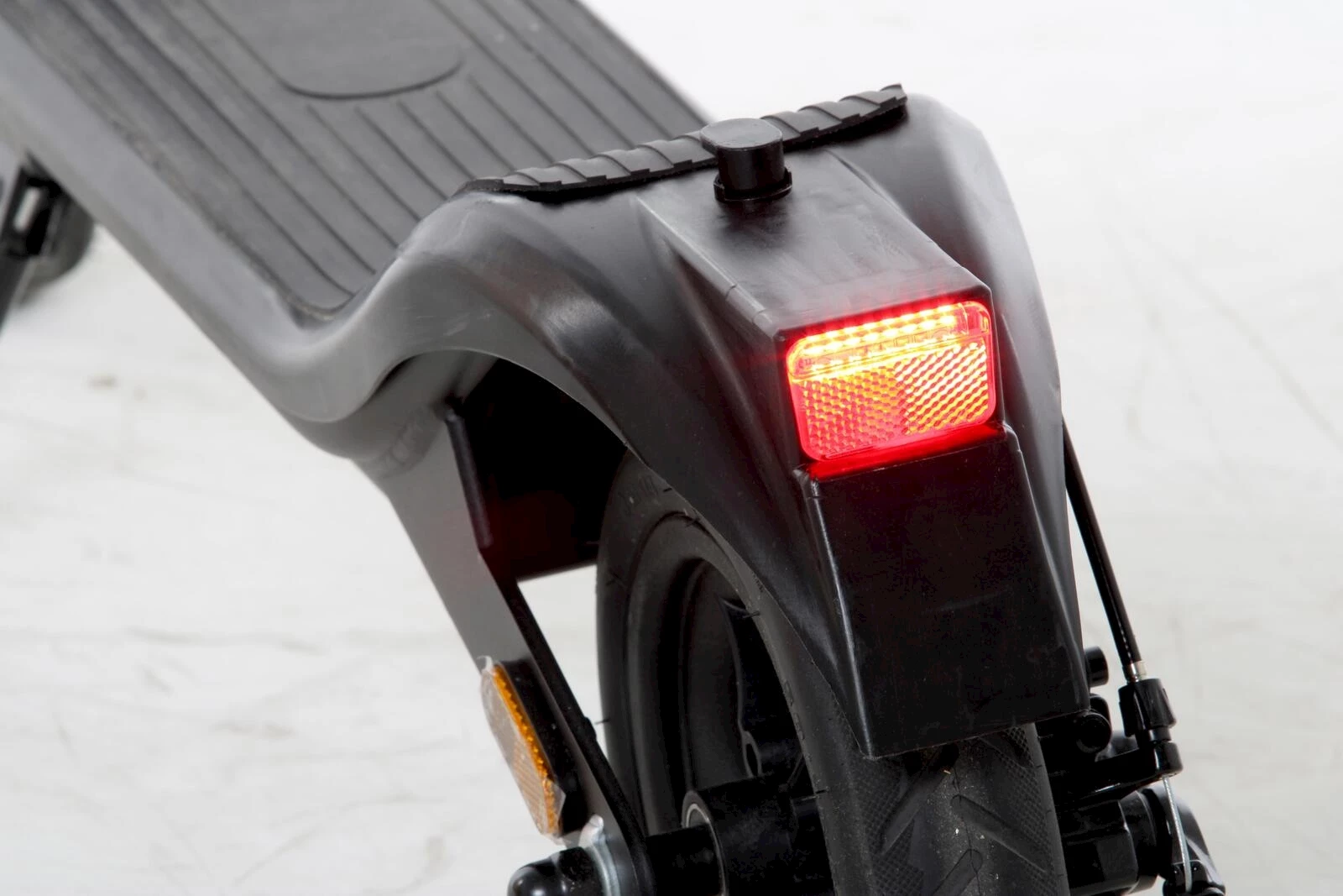 Die Kombination aus elektronischer Motorbremse und Trommelbremse vorne sorgt für präzises Bremsverhalten. Der 350 W starke Motor beschleunigt das Trottinett auf bis zu 20 km/h und meistert Steigungen bis 14 %. Dank der 8,5-Zoll-Lufträder fahren Sie ruhig und stabil.