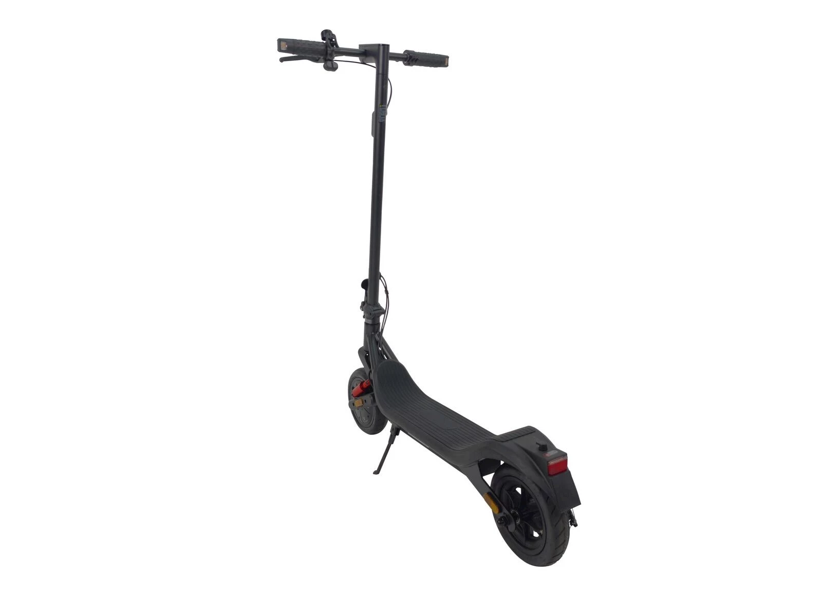 Licht vorne und hinten, mit Bremslicht. 4 Fahrmodi, Tempomat. Leistung: 350 W. Max. Geschwindigkeit: 20 km/h. Reichweite: Ca. 25 km. Traglast: 100 kg. Klappbar. Masse: 103 × 53 × 49,5/116 cm.