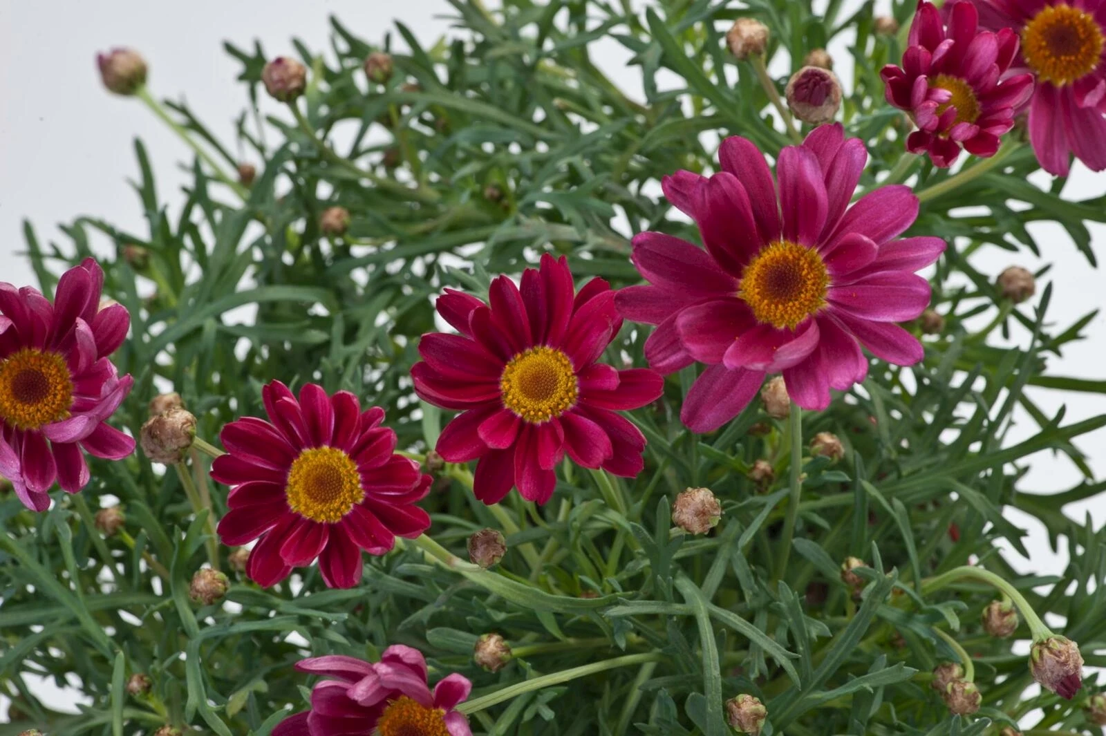 Argyranthemum frutescens, auch als Strauchmargerite bekannt, ist eine wunderschöne, reich blühende Pflanze, die sich durch ihre farbenfrohen Blüten und ihre Vielseitigkeit im Garten auszeichnet. Mit ihren auffälligen, meist weissen, rosafarbenen oder gelben Blüten bringt sie schöne Akzente in Beete, Balkonkästen oder Pflanzkübel.
