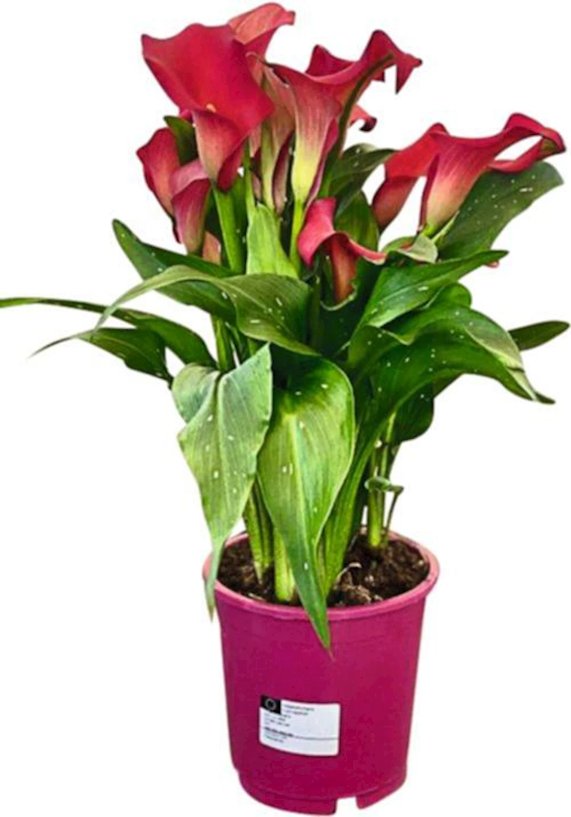 Callas bevorzugen einen sonnigen bis halbschattigen, warmen Standort mit feuchtem, humosem Boden. Während der Wachstums- und Blütezeit benötigen sie regelmässige Wassergaben, ohne dass sich Staunässe bildet. Nach der Blüte sollte das Giessen langsam reduziert werden. Eine regelmässige Düngung alle 2 Wochen während der Blütezeit fördert gesundes Wachstum und eine reiche Blüte.