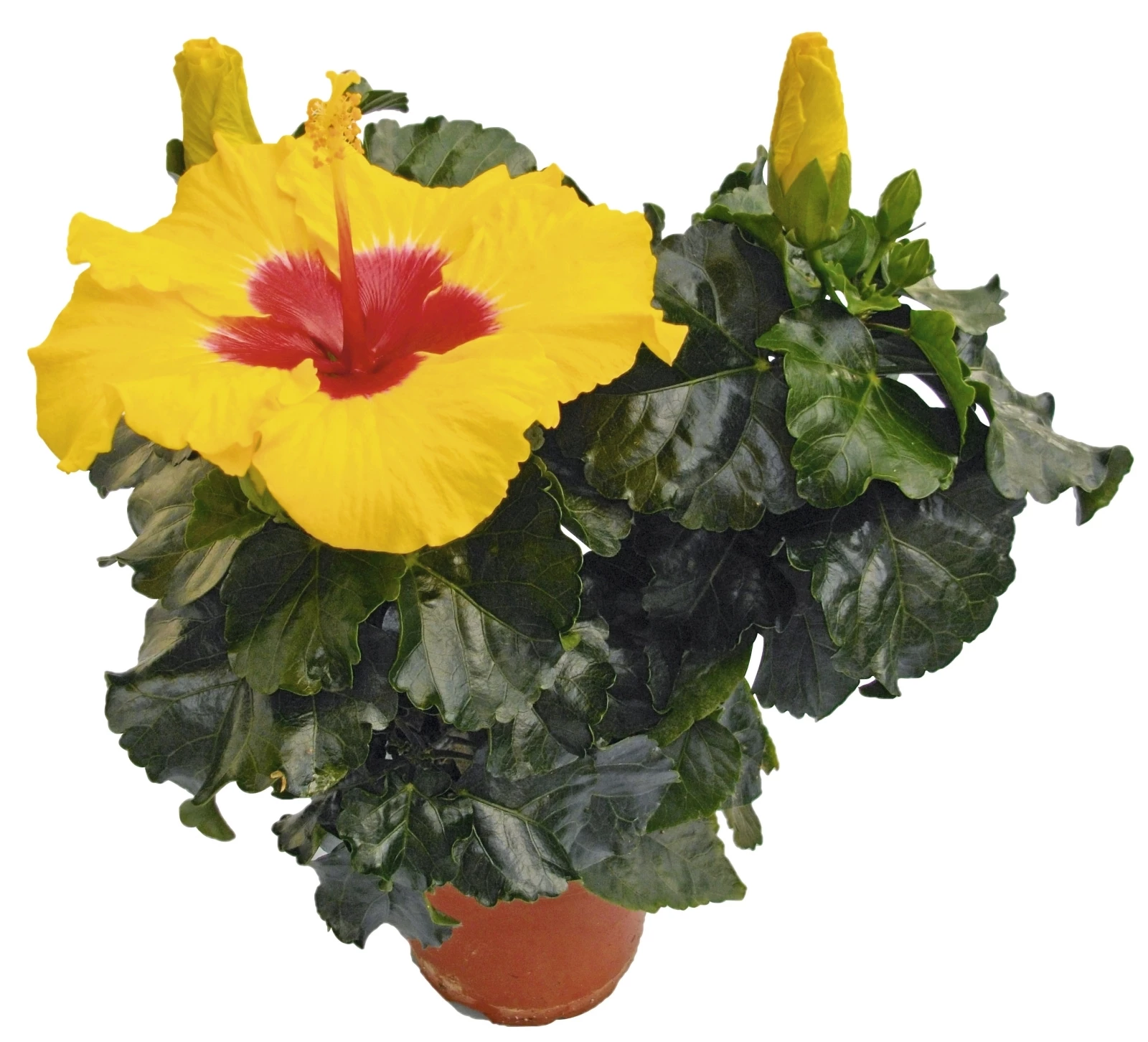 Der Roseneibisch besticht durch seine auffälligen, leuchtenden Blüten, die in einer Vielzahl von Farben wie Weiss, Gelb, Orange, Rot und Pink erstrahlen. Die schönen Zimmer- und Kübelpflanzen gibt es sowohl mit gefüllten als auch ungefüllten Blüten.