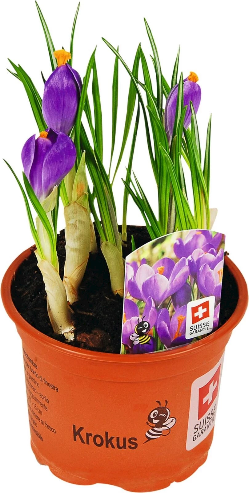 Krokusse (Crocus vernus) werden oft fälschlicherweise den Zwiebelgewächsen zugeordnet. Sie besitzen jedoch eine sogenannte Stängelknolle. Diese Knolle ist einjährig, es bilden sich aber jedes Frühjahr eine oder auch mehrere neue Tochterknollen, welche zwischen März und April blühen. Krokusse bevorzugen einen mässig feuchten Boden und einen sonnigen bis halbschattigen Standort. Sie ist eine frostharte und insektenfreundliche Pflanze, welche zu den ersten Blumen im Frühjahr gehört.