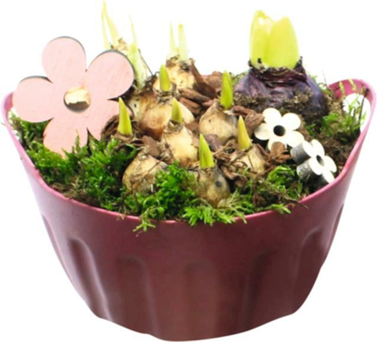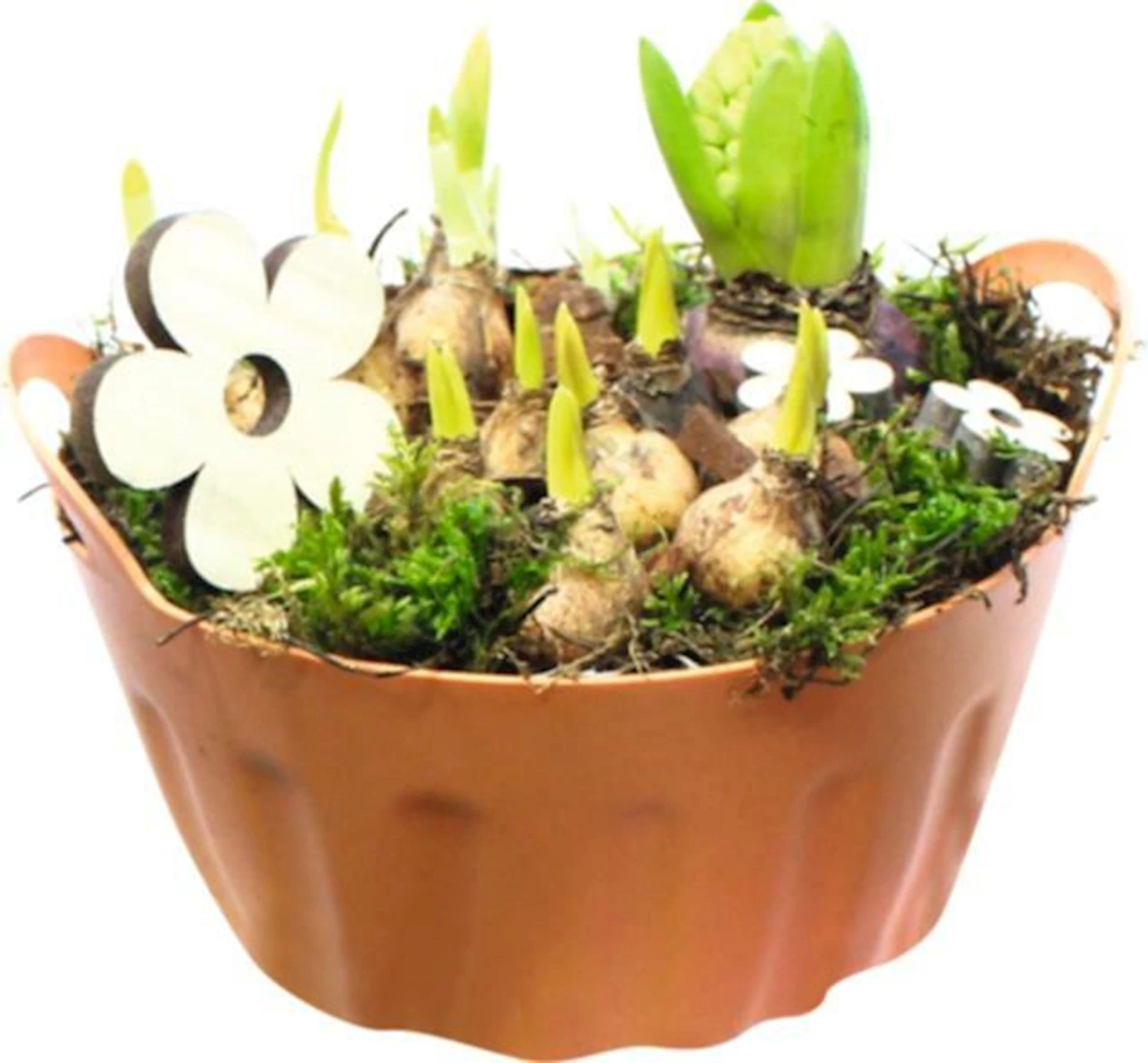 Die im Arrangement enthaltenen Pflanzen können auch in den Garten gesetzt werden, wo sie jedes Jahr erneut blühen und weiterhin Freude bereiten.