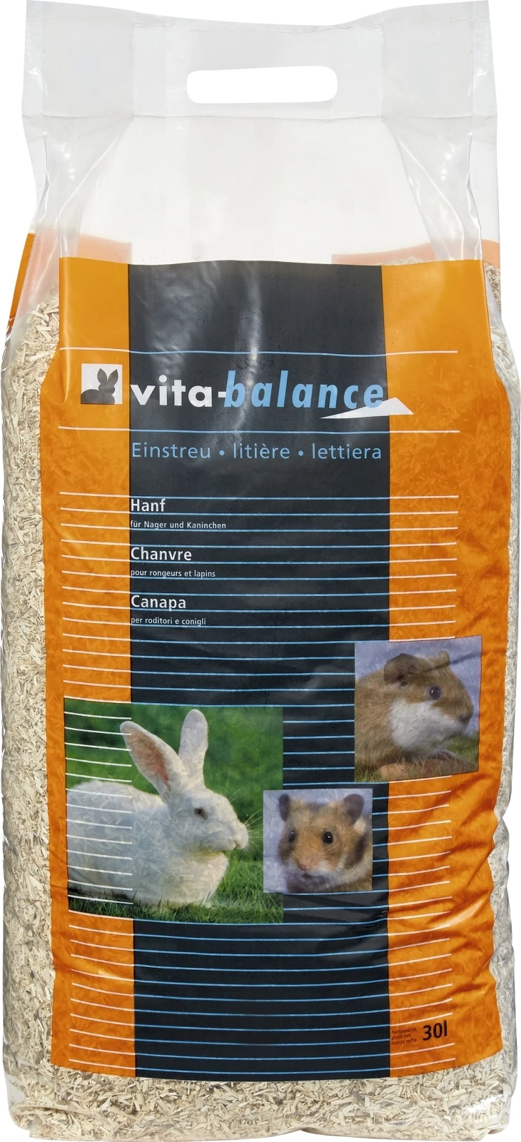 Das Hanfstreu von vita-balance entsteht aus einer uralten Kulturpflanze, welche ohne Unkraut-, Krankheits- und Schädlingsbekämpfung umweltfreundlich angebaut werden kann. Die für die Streu verwendeten Hanfsorten weisen jedoch einen tieferen THC -Gehalt auf und haben mit den für die Arznei- und Rauschmittelherstellung verwendeten Sorten wenig gemeinsam. Die Hanfstreu ist sehr saufähig, staubarm und vermindert die Geruchsbildung. Zudem wirkt die Einstreu gegen Insekten- und Parasitenbildung, was zu einer einfachen Pflege beiträgt.
