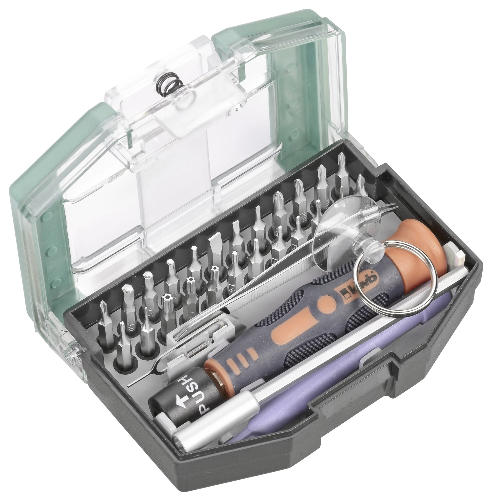 30-teilig. Alle gängigen Bits für Spielkonsolen, Smartphones, etc. Box mit Magnetstreifen zur sicheren Schraubenablage.