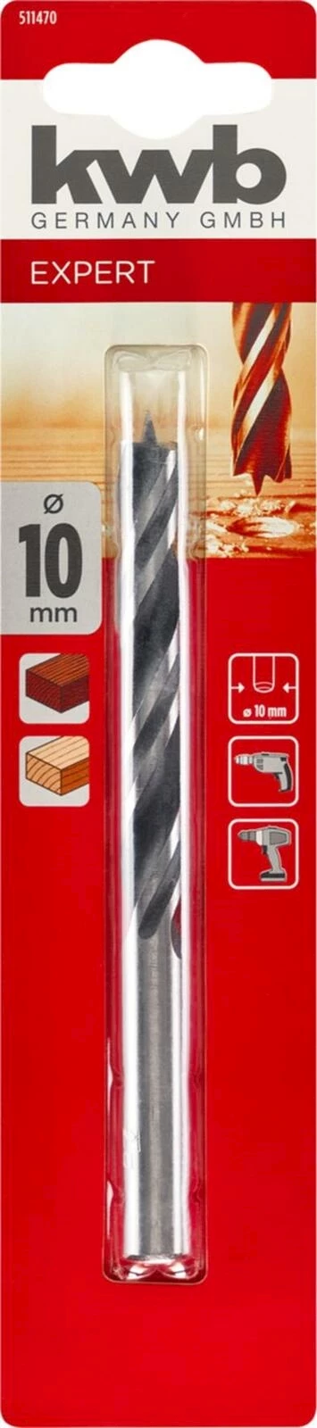 Für Weich- und Hartholz. Spanlos geformt. Mit Zentrierspitze und Schulterschneider und 2-Fasen-Spiralform für stabilen Geradeauslauf. Material: CS #45.