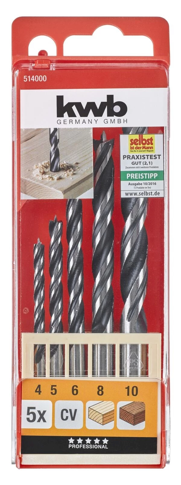 Der Holzspiralbohrersatz ist für präzise Bohranwendungen in verschiedenen Holzarten geeignet. Die Bohrer bestehen aus hochwertigem CV-Stahl und sind spanlos geformt, wodurch eine 2-Fasen-Spiralform entsteht. Diese Konstruktion gewährleistet einen stabilen Geradeauslauf und ermöglicht ein müheloses Eindringen in das Holz. Jeder Bohrer ist mit einer Zentrier Spitze und einem Schulterschneider ausgestattet, um präzise und ausrissfreie Bohrungen zu gewährleisten. Der zylindrische Schaft sorgt für eine stabile Befestigung und eine zuverlässige Führung der Bohrer in unterschiedlichen Holzmaterialien.