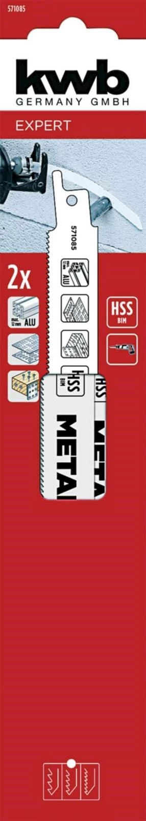 Für Eisen, Buntmetall, Rohre und Profile (3-8 mm). Passend für handelsübliche Säbelsägen und Elektrofuchsschwänze.
