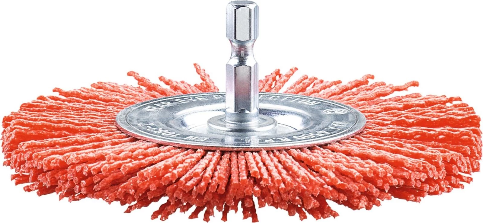 Die Scheibenbürste aus Nylon ist ideal zum Reinigen und Entfernen von Farbe und Lack auf rostfreiem Stahl, Holz, Metall, Buntmetall und Nichteisenmetall. Sie können damit zudem auch Strukturarbeiten am Holz ausführen.