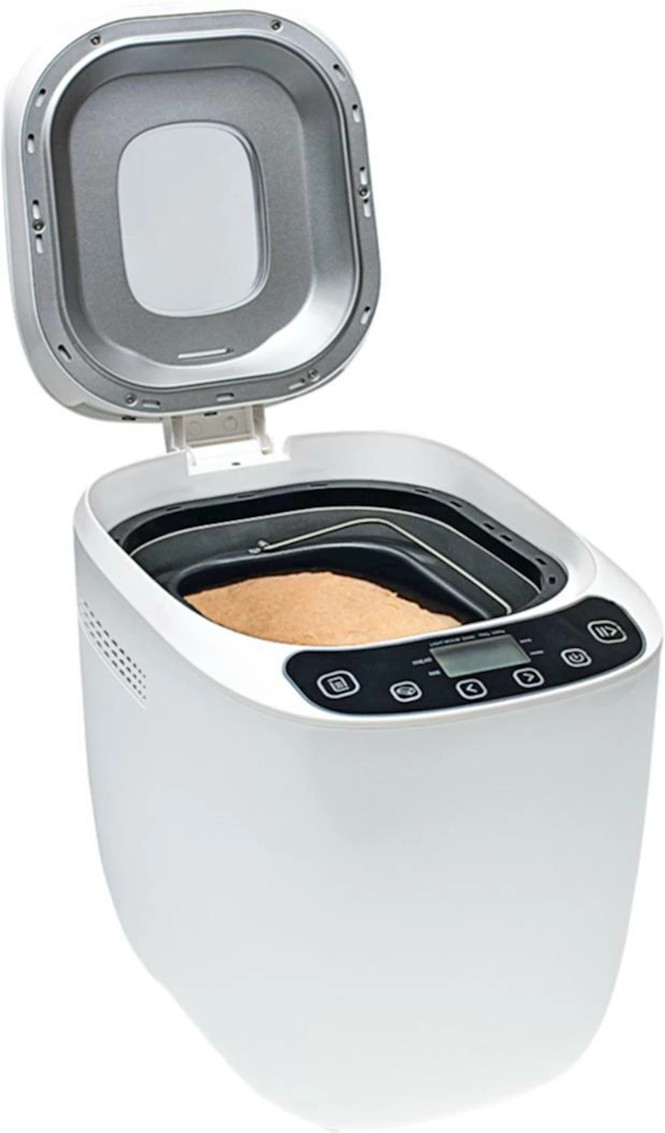 Mit der Brotbackmaschine von Prima Vista zaubern Sie fix fertige Brote auf Knopfdruck. Die Maschine knetet den Teig und backt Ihre Brote von selbst. Sie können 12 verschiedene Programme, den gewünschten Bräunungsgrad und eine Verzögerung von bis zu 17 Stunden einstellen. Der Brotbäcker ist für max. 1 kg Brot ausgelegt. Durch das Sichtfenster können Sie mitverfolgen, in welchem Zustand sich der Teig befindet. Der Knethaken kann einfach entfernt und die beschichtete Backform problemlos gereinigt werden. Im Lieferumfang sind zusätzlich diverse Rezeptvorschläge enthalten. Die Garantiedauer beträgt 5 Jahre.