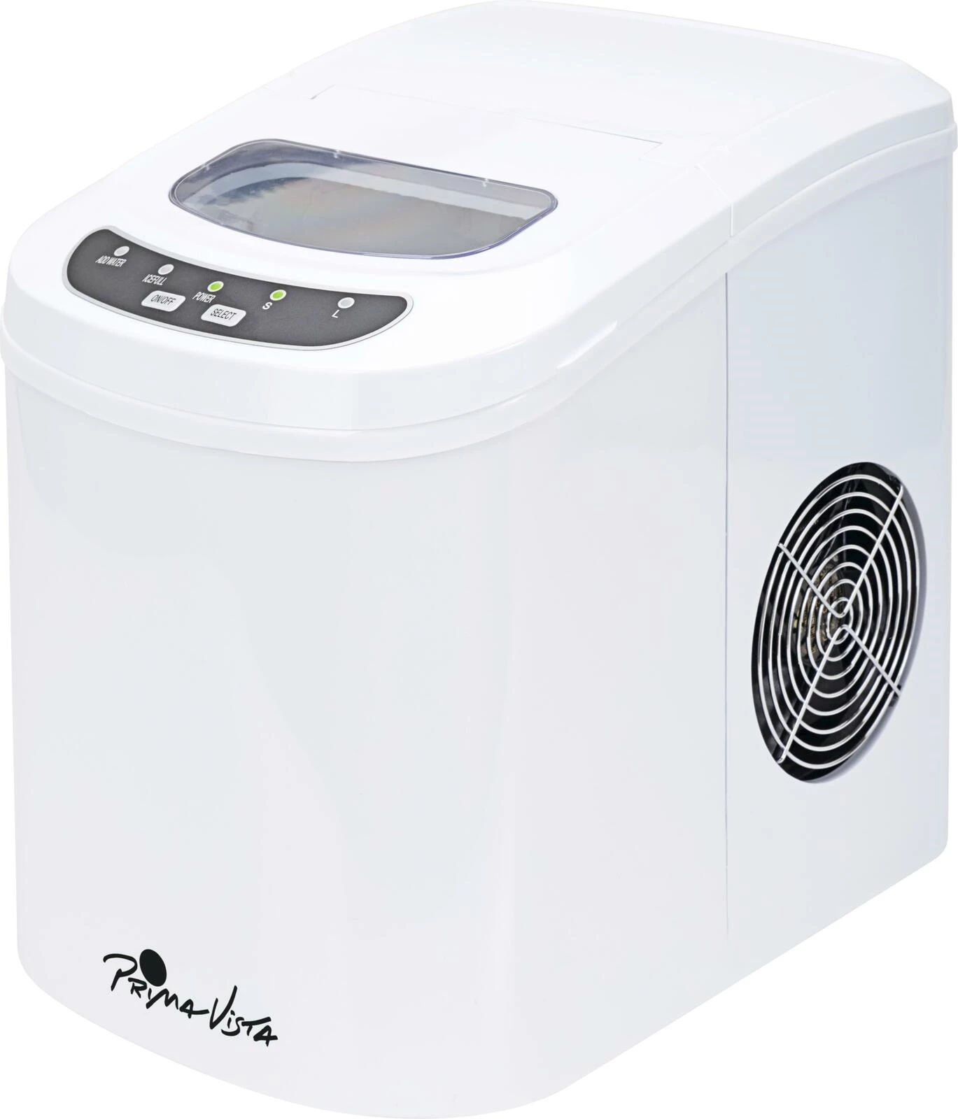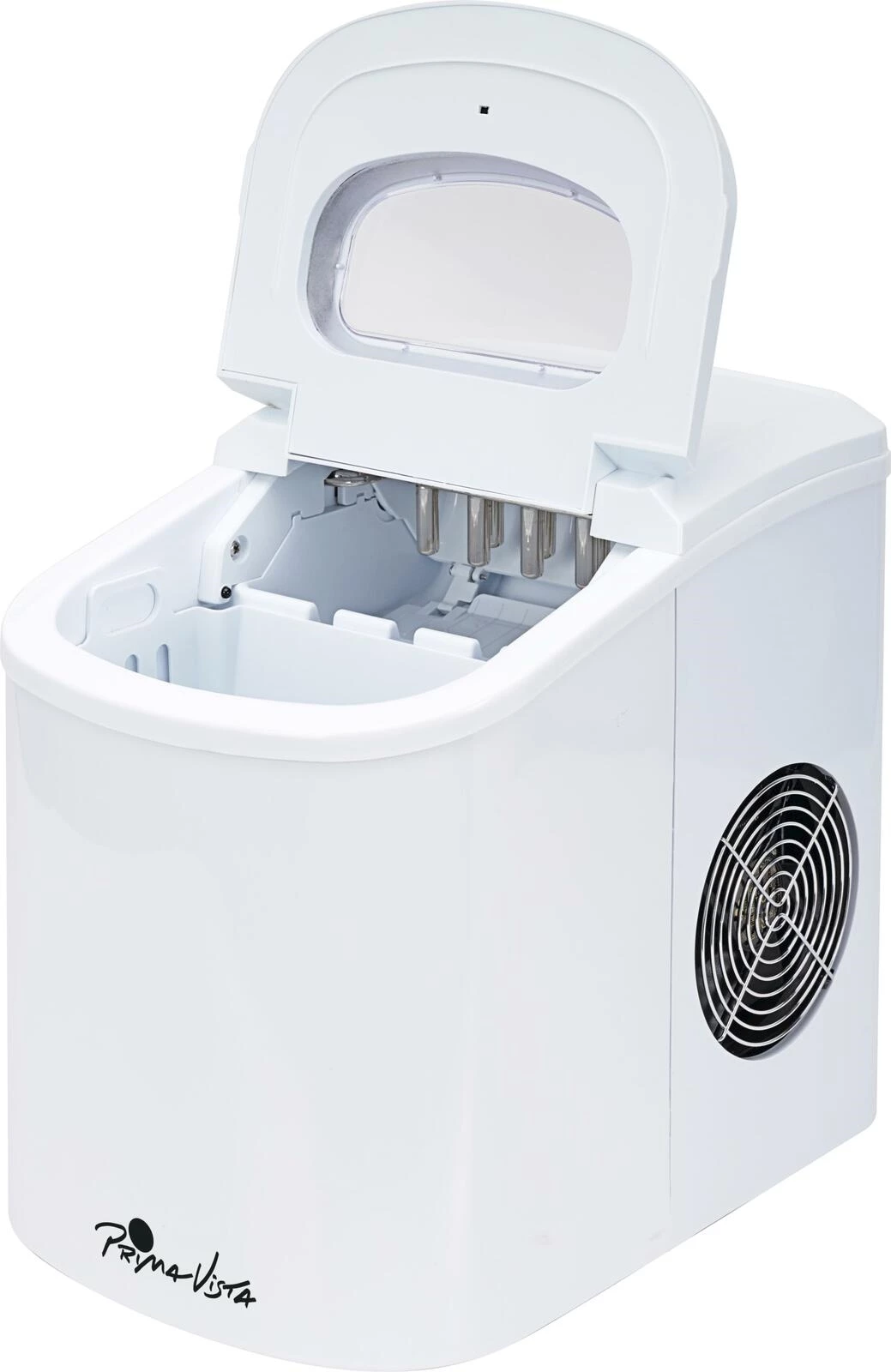 Die Eismaschine von Prima Vista produziert abgerundete Würfel in gewünschter Grösse. So steht einem Sommer mit kalt servierten Getränken nichts mehr im Weg. In 24 Stunden produziert die Speiseeismaschine bis zu 12 kg. Im Wassertank ist Platz für maximal 2,3 l und der Auffangbehälter fasst 450 g. Betrieben wird der Eismacher mit 110 Watt über einen 230 V Stecker an einem 2 Meter Kabel. Masse: 24 × 36 × 33 cm. Gewicht: 7,5 kg.