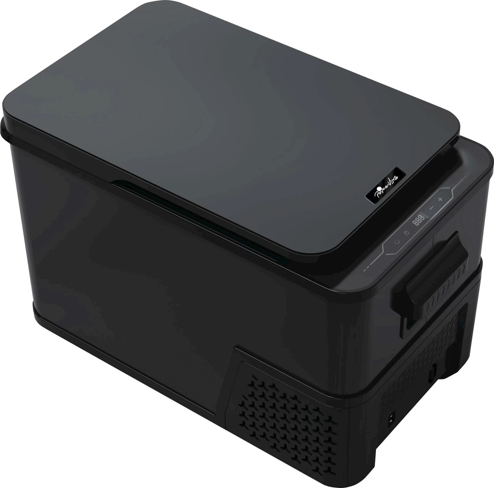 Prima Vista. Kompressor Kühlbox für kalte Getränke, Glace, frische Lebensmittel überall und jederzeit. Einstellung bis -20 °C möglich. Masse: 60 × 33,7 × 39 cm. Inkl. Netz- und Autokabel.