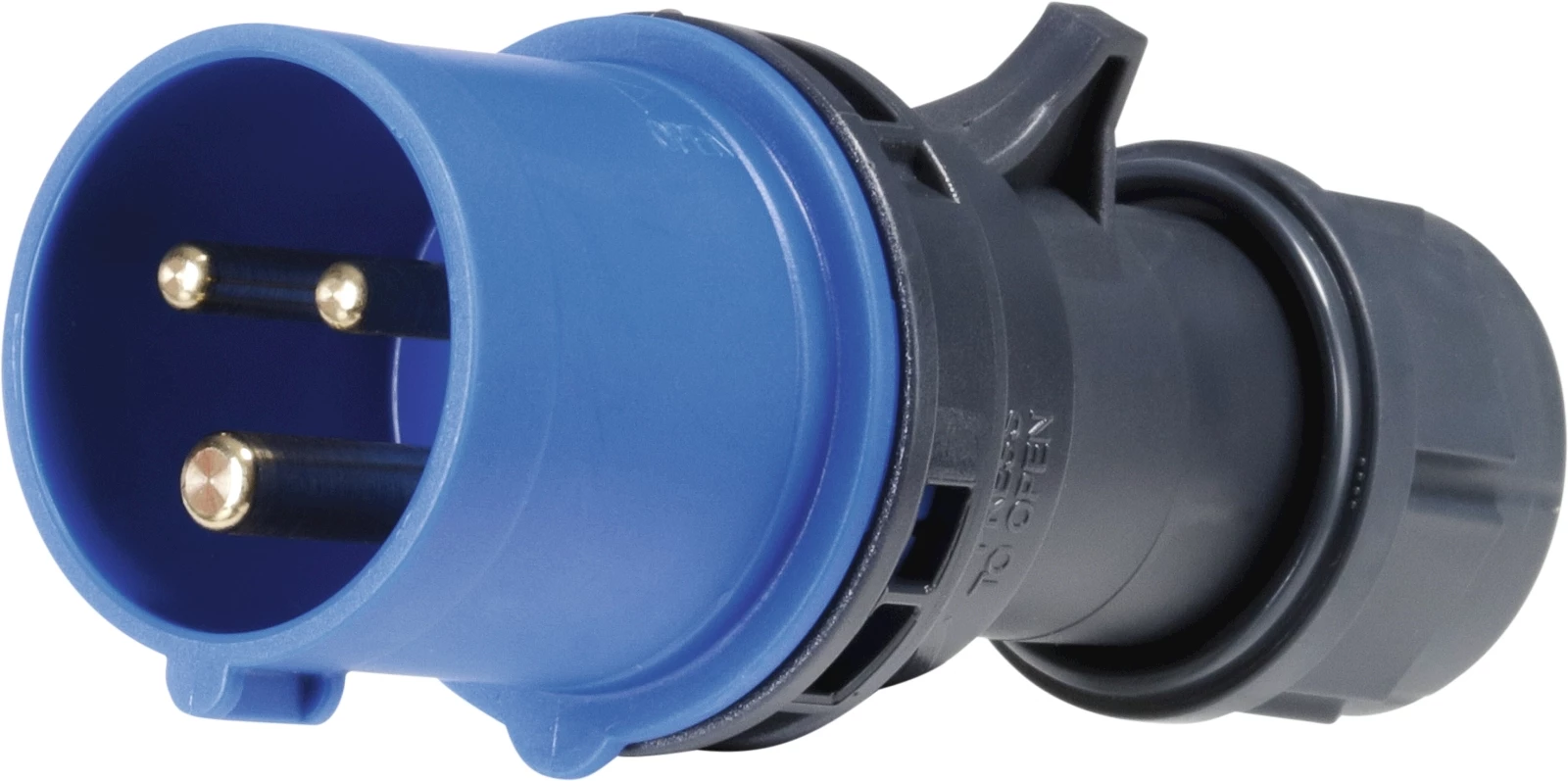 CEE Stecker 16/3 IP44 230V 6h, turn2fix. Der Stecker 16/3 230 V 6 h verfügt über eine IP44 Schutzzertifizierung und ist somit gegen Spritzwasser geschützt. Die Abdeckung kommt in blauer Aussenoptik. Der Stecker ist für maximal 4'000 Watt ausgelegt.
