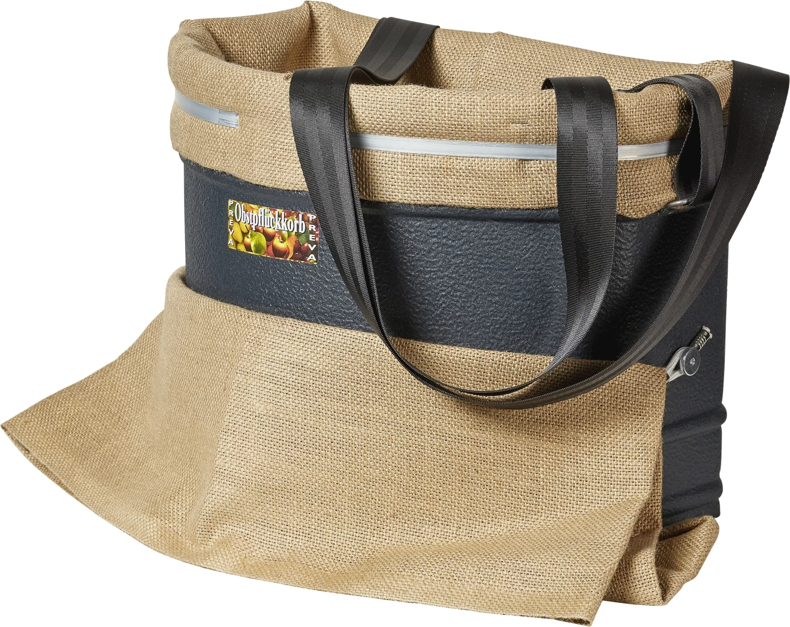 Robuster Obstpflückerkorb aus Aluminium mit 24 Litern Fassungsvermögen. Ausgestattet mit einer praktischen Bodenentleerung für schnelles Ausleeren und stabilen Kunststoffträgern für komfortables Tragen.