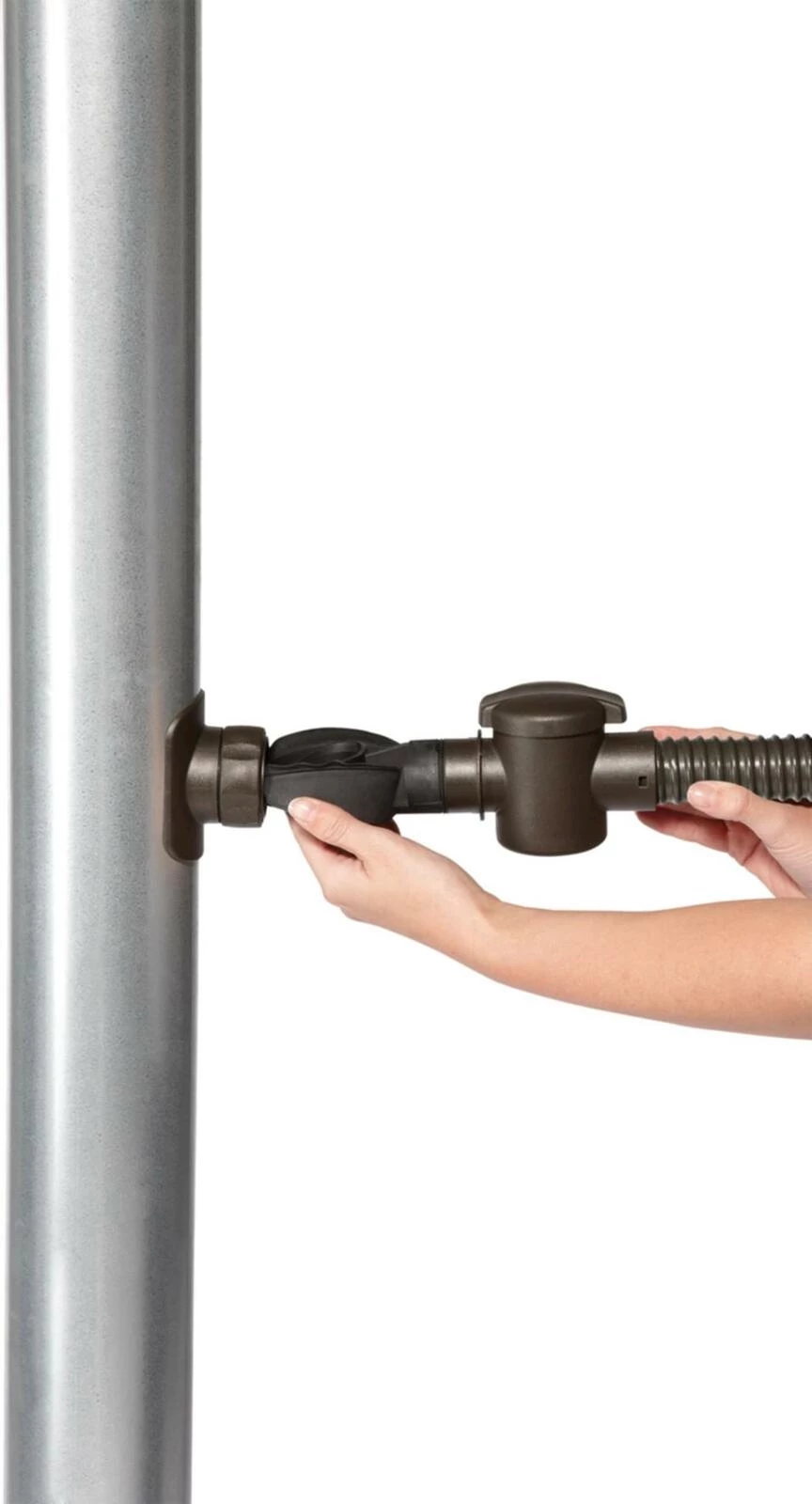 Der Regensammler fängt Regenwasser auf. Er lässt sich einfach montieren und ermöglicht eine einfache Umstellung zwischen Sommer- und Winterbetrieb.