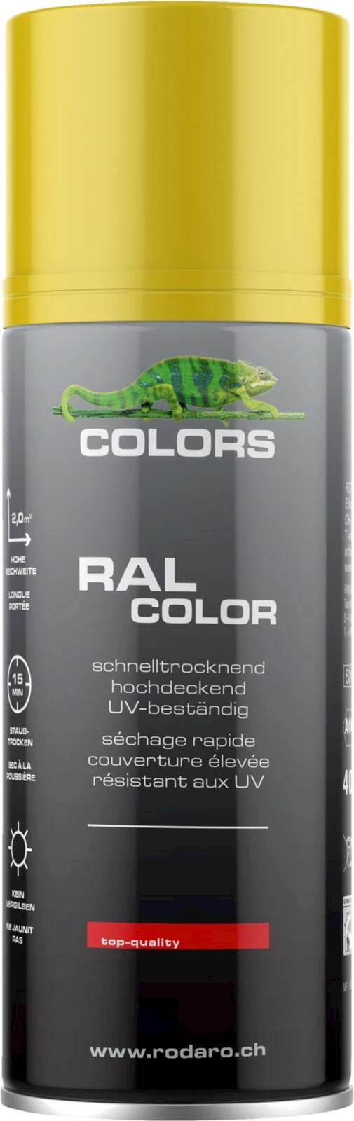 Hochdeckender und schnelltrocknender Spraylack für den Innen- und Aussenbereich. RAL1021.
