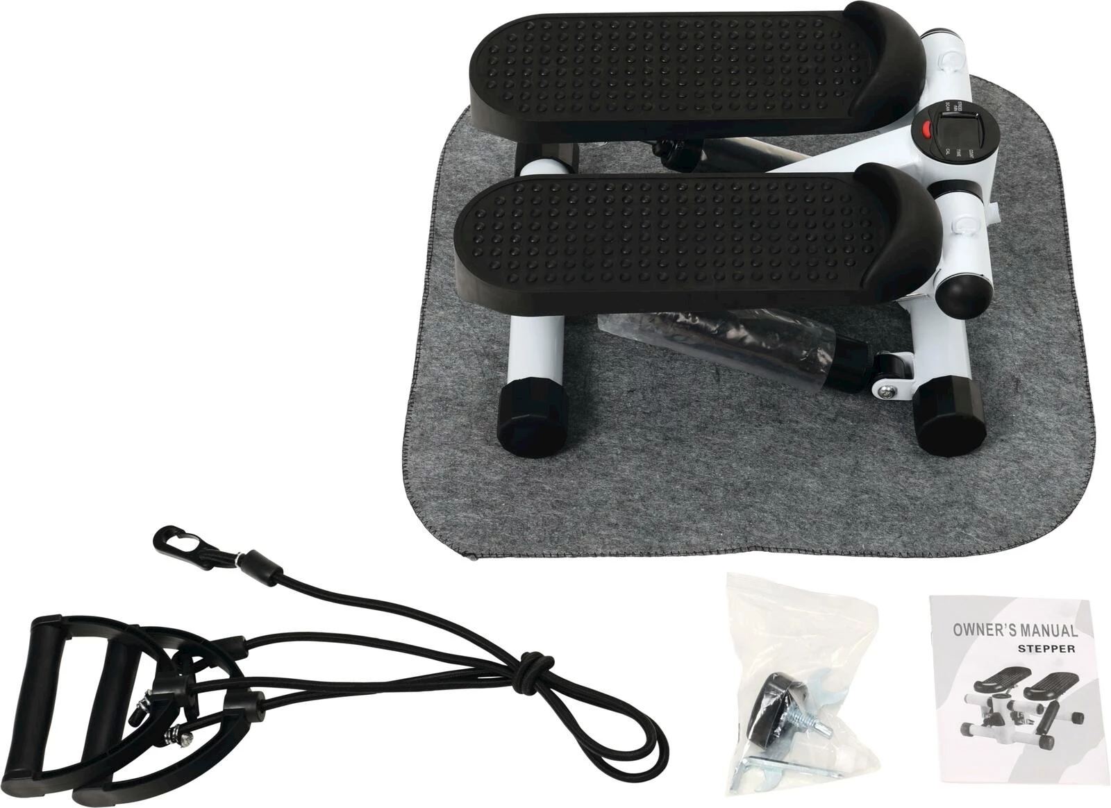 Besonders praktisch: Der Mini Stepper verfügt über Halterungen für die mitgelieferten Widerstandsbänder. Damit erweitern Sie Ihr Workout im Handumdrehen und können gleichzeitig Arme, Schultern und Oberkörper trainieren. Das macht den Stepper zu einem echten 2-in-1-Gerät, ideal für ein umfassendes Ganzkörpertraining.