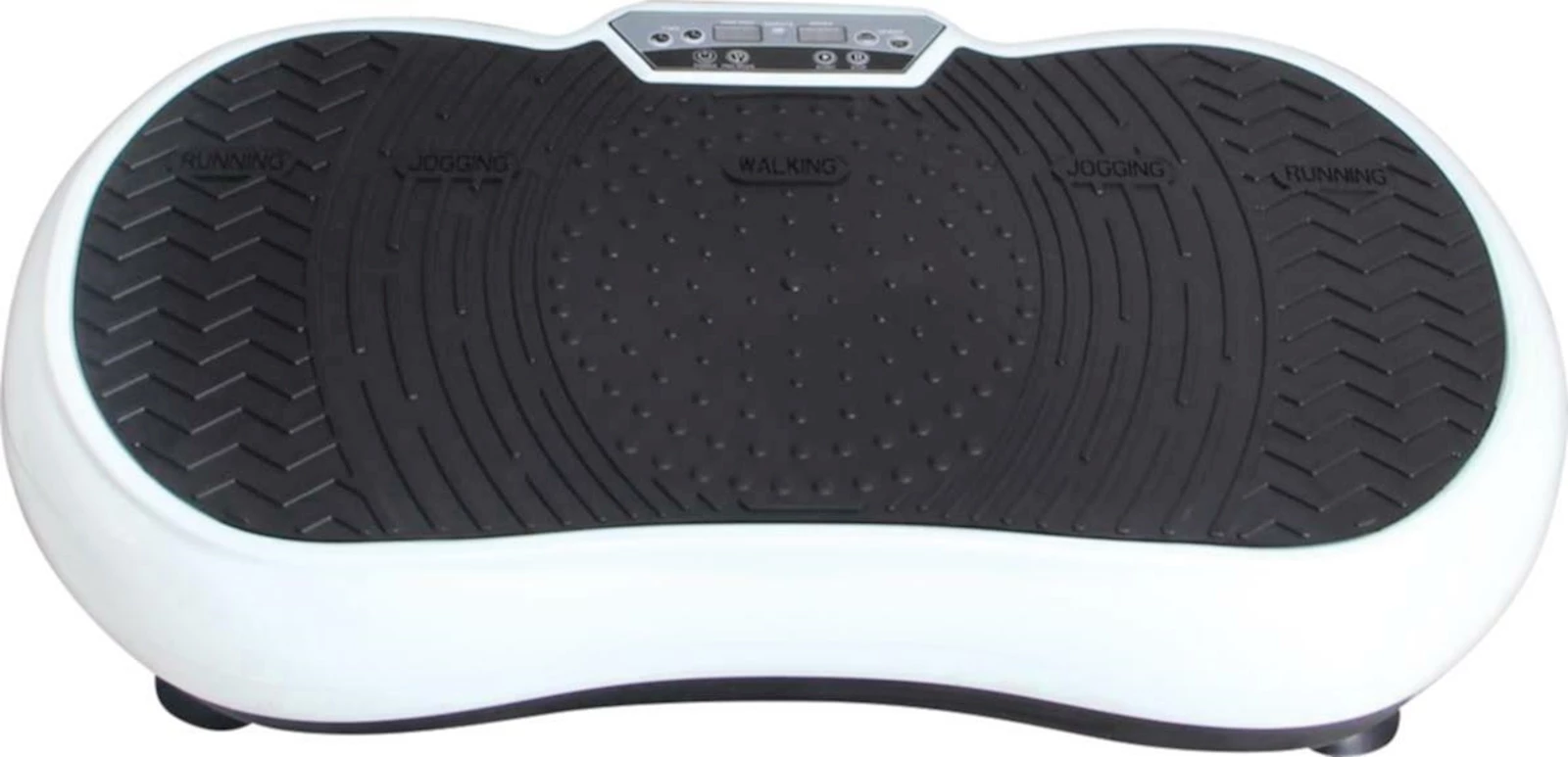 Mit unserer Vibrationsplatte trainieren Sie ganz einfach von Zuhause aus. Die Vibrationen stimulieren schonend aber dennoch effizent Ihre Muskeln. Dadurch steigert sich Ihre Fitness und Kraft, was wiederum zu mehr Wohlbefinden führt. Die Vibrationsplatte kann auf dem Display oder per Fernbedienung gesteuert werden. Sie können die Intensität und die Dauer des Trainings individuell einstellen und bei Bedarf die Übung stoppen. Das Fitnessgerät verfügt über 99 Leitstungsstufen und ist mit Widerstandsbänder ausgestattet. Die Vibrationsplatte hat eine Belastbarkeit von maximal 150 kg. Für die Fernbedienung benötigen Sie 2 × AAA Batterien, diese sind nicht im Lieferumfang enthalten. Spannung 220 - 240 V. Eigengewicht: 11,5 kg. Masse: 67 × 38 × 12,5 cm.