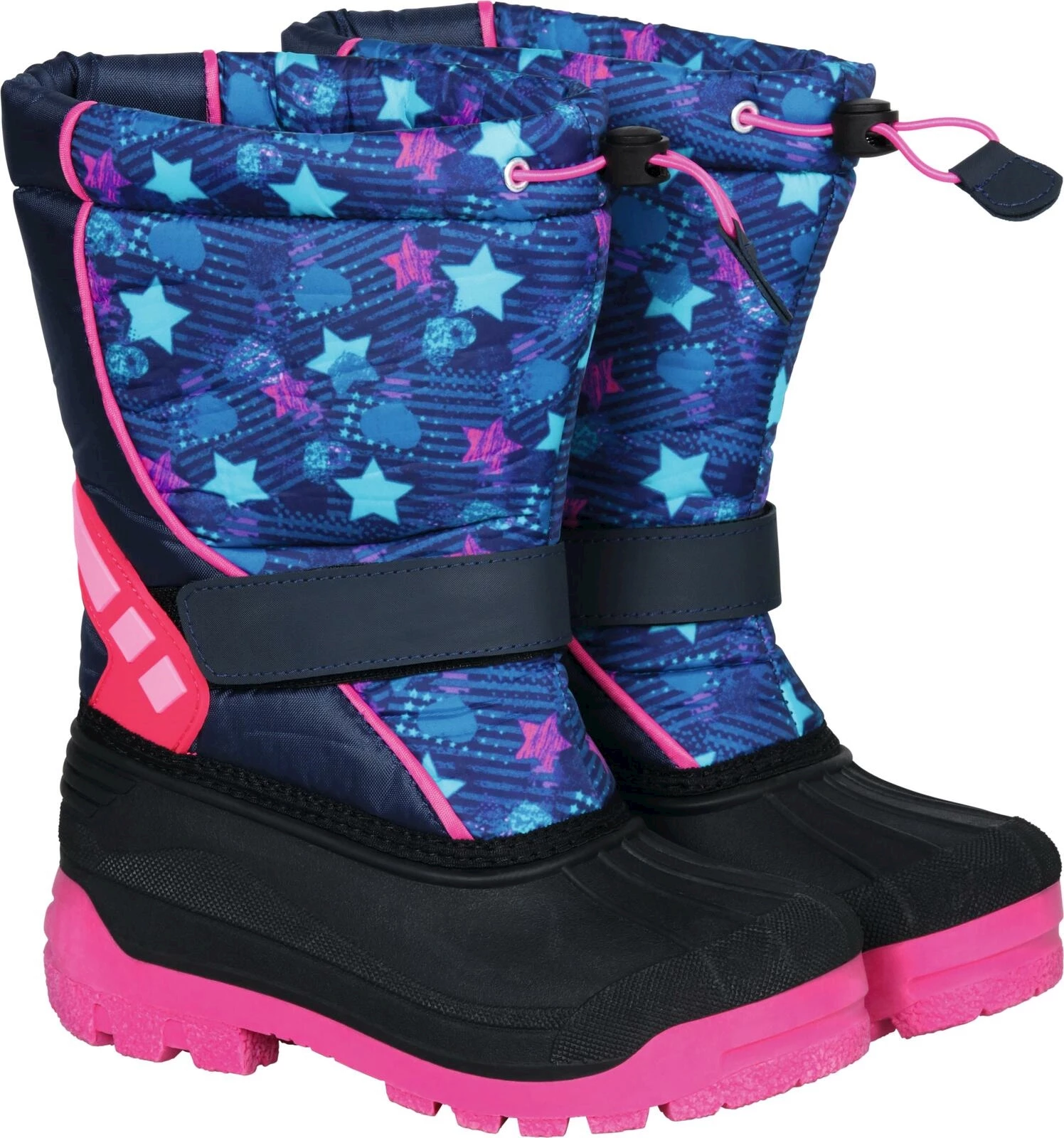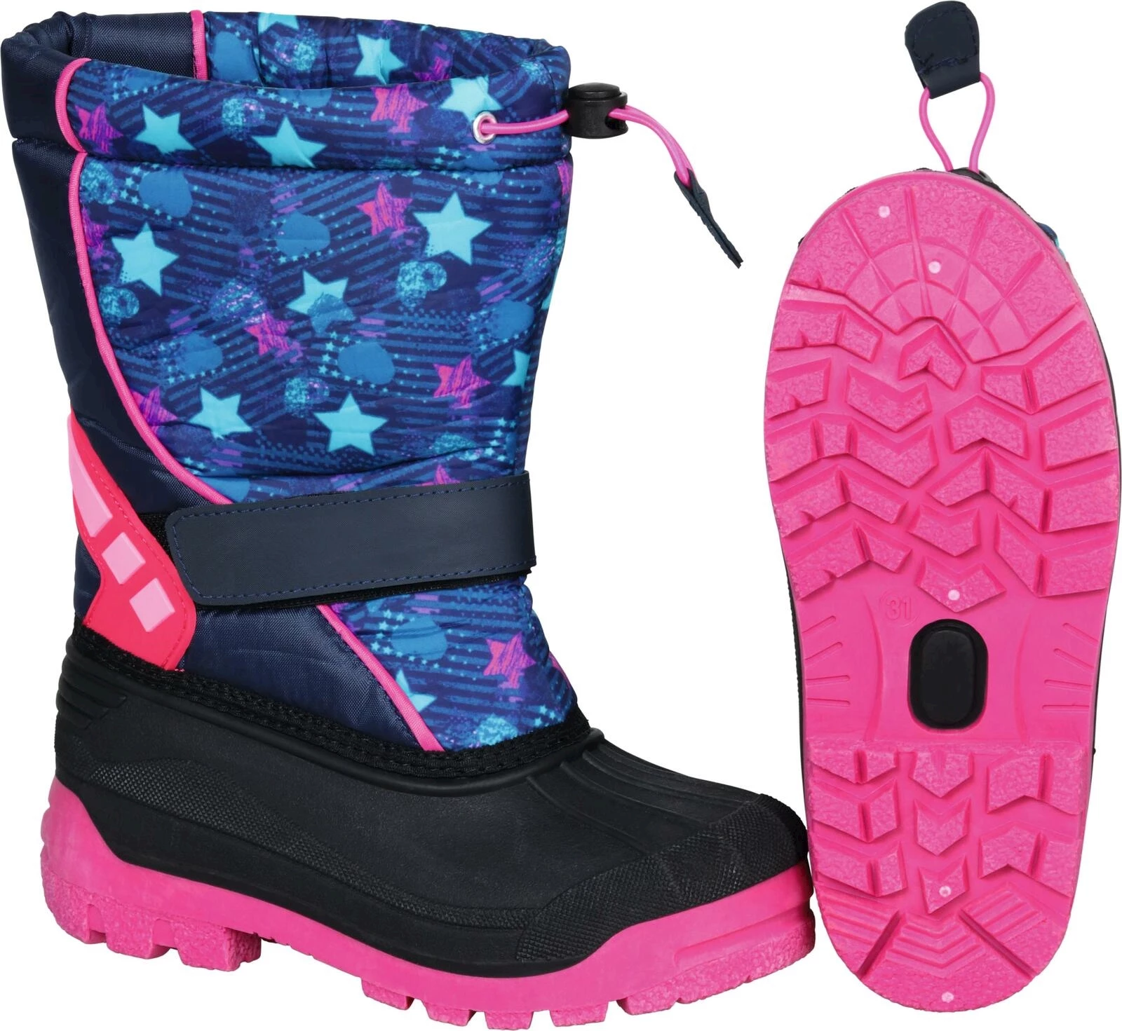 Wasserfest und warm gefüttert. Material: Oxford, Kunstfellfutter, TPR-Sohle. Farben: Blau/Pink. Grössen: 28 – 35.