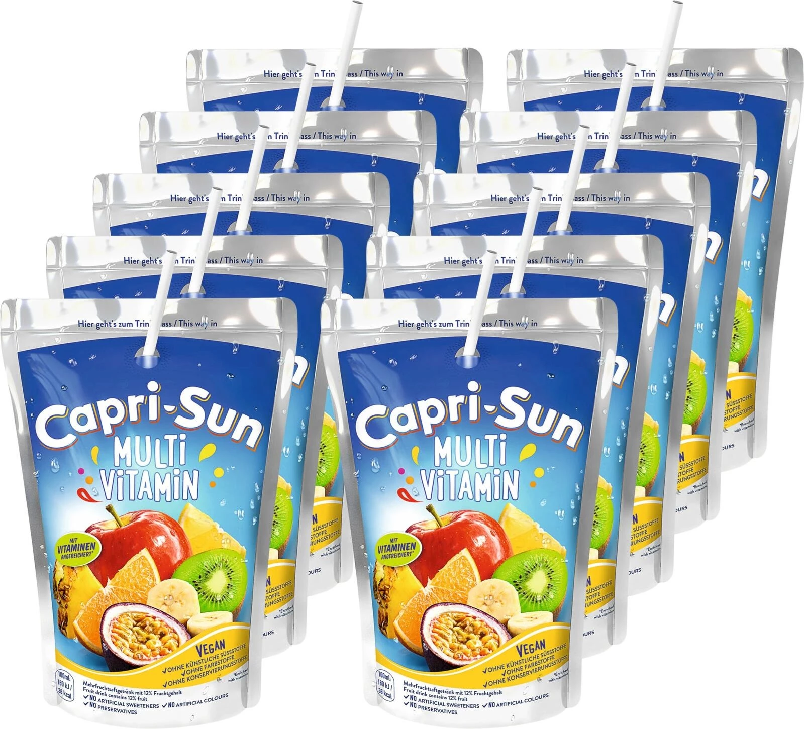 Das Erfrischungsgetränk von Capri-Sun schmeckt lecker nach Orangen, Äpfeln, Ananas, Bananen, Kiwi und Maracuja. Ohne künstliche Süssstoffe, Farb- und Konservierungsstoffe.