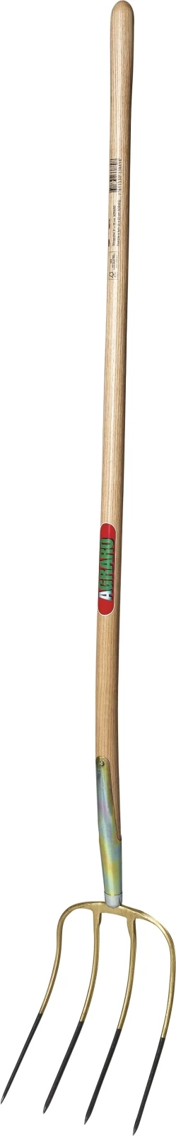 Agraro. Mit lackiertem Holzstiel. Gabel und Tülle sind Goldfarben. Werkzeugkopf mit 4 Zinken, 31 × 23 cm.