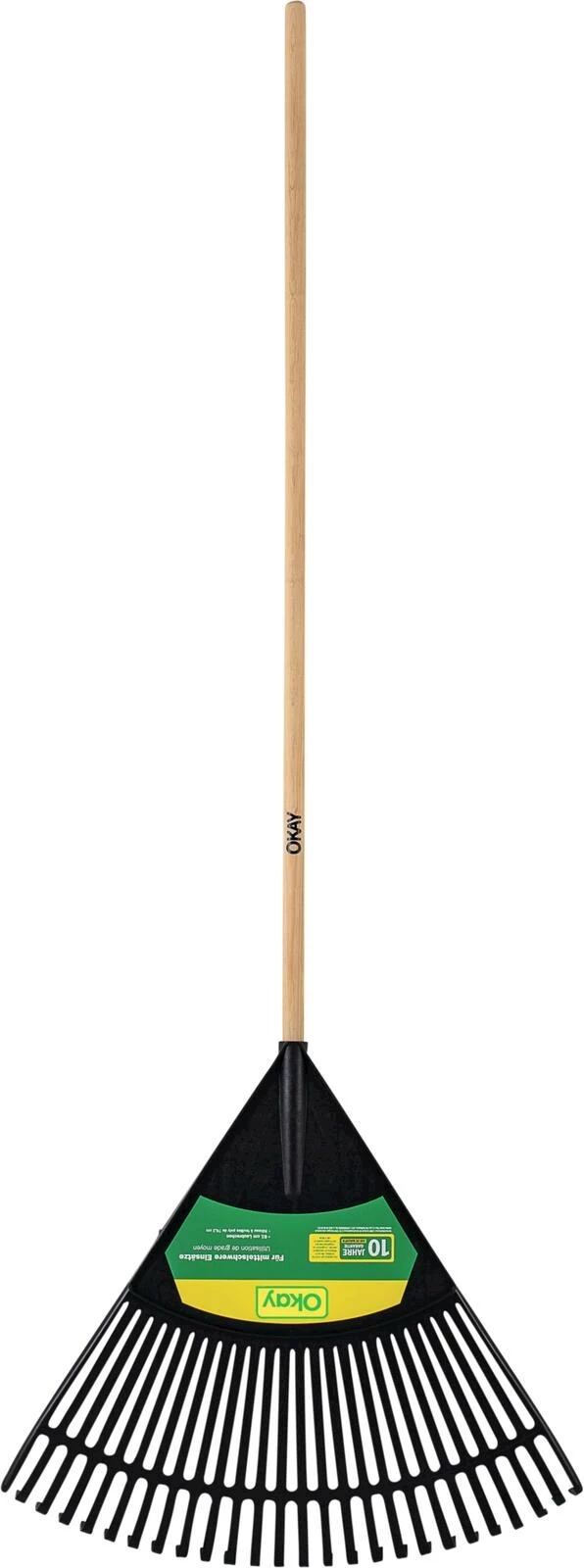 Okay. Zum Rechen von Laub, Blättern, Zweigen, Gras, Heu oder Stroh. Werkzeugkopf aus Kunststoff. Arbeitsbreite: 60 cm.