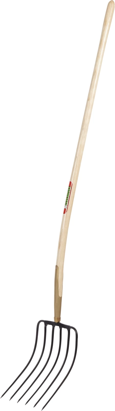 Die Agraro Silogabel 6 Zinken wird zum Beispiel zum Transportieren und Umverteilen von Heu, Siliergut und Stroh verwendet. Der leicht geschwungene Stiel ist aus langlebigem und robustem Eschenholz gefertigt. Die Gabel hat 6 Zinken aus Stahl im Abstand von je 6 cm. Die Gesamtbreite beträgt 28,5 cm.