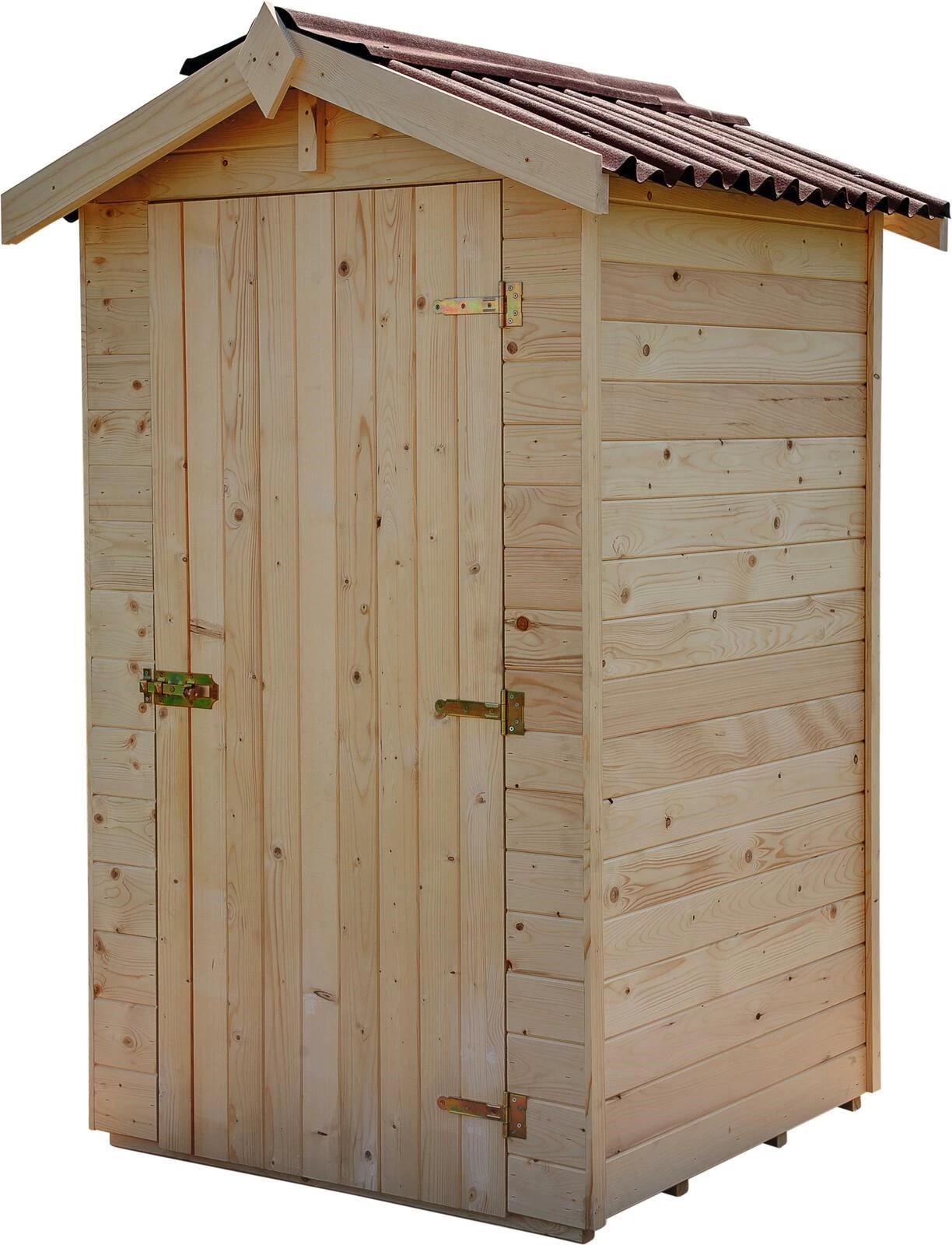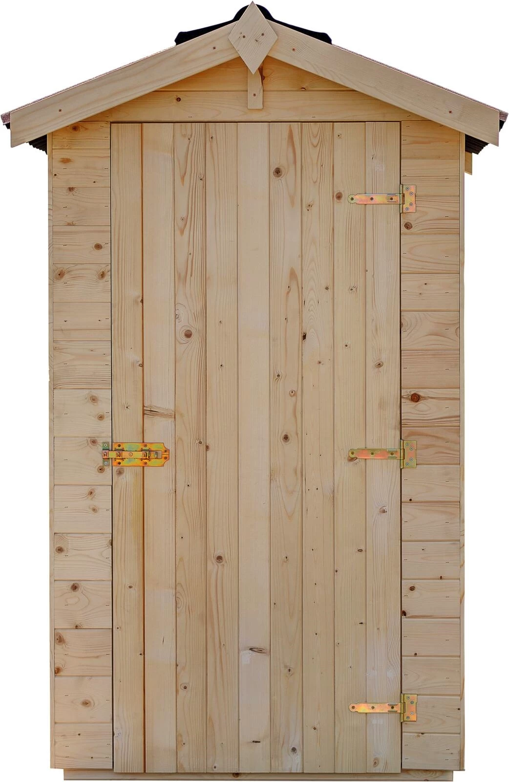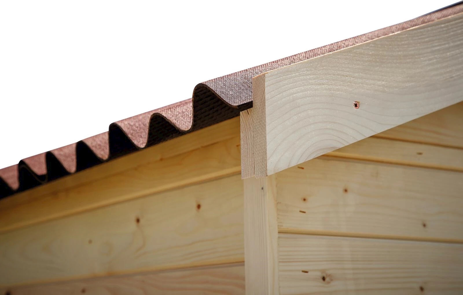 Schönes Gerätehaus mit einer Nutzfläche von 1.2 m ². Einfacher Zusammenbau durch leicht verständliche Montageanleitung. Das Dach besteht aus Bitumenwellplatten und der Boden aus OSB Platten mit Auflagebalken. Das verwendete Holz ist unbehandelt.