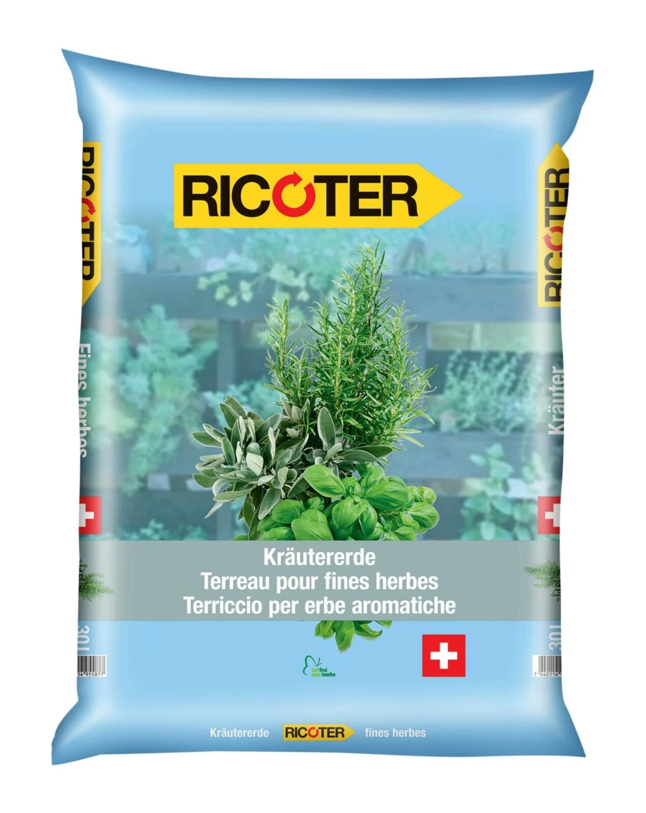 Die Kräutererde Ricoter Bio-Line 30 l ist bestens geeignet für das Ein- und Umtopfen von Küchenkräuter, das Pflanzen von Kräutern im Gartenbeet sowie die Ansaat von Kräutern, Gemüse und Blumen.